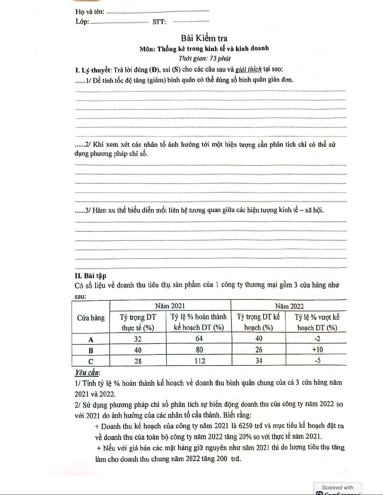 Bài Tập Thống Kê Kinh Doanh | Thống kê trong kinh tế và kinh doanh | Trường Đại học Kinh tế Quốc dân