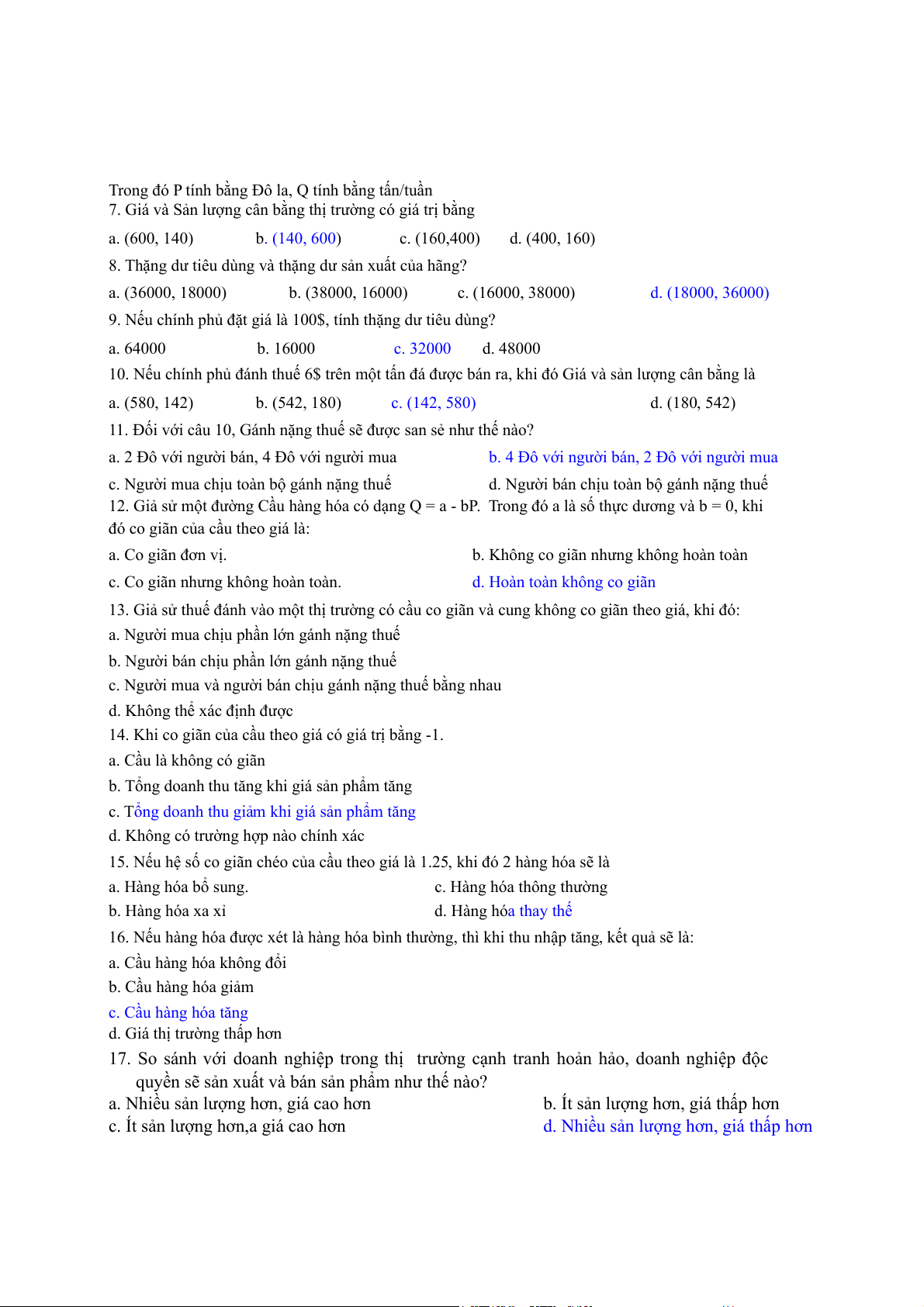 13. Giả sử thuế đánh vào một thị trường có cầu co giãn và cung không co giãn theo giá, khi đó: