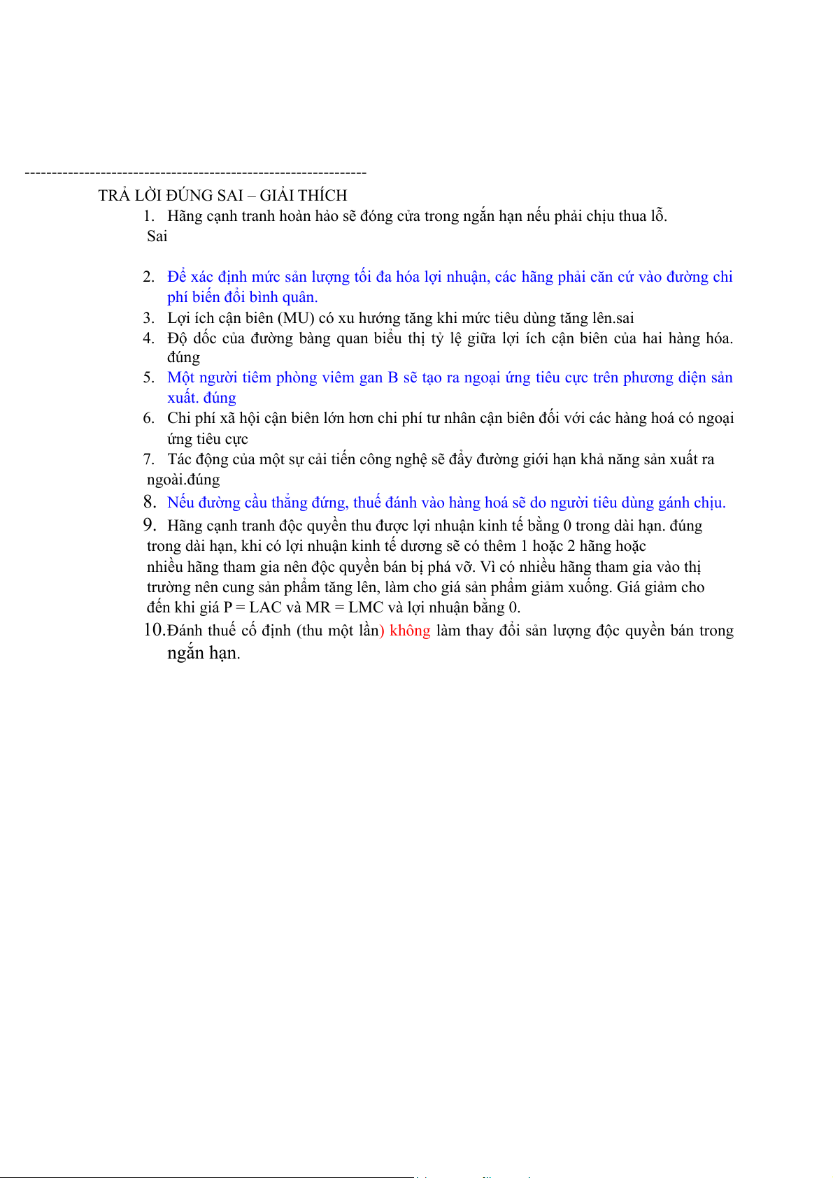 TRẢ LỜI ĐÚNG SAI – GIẢI THÍCH