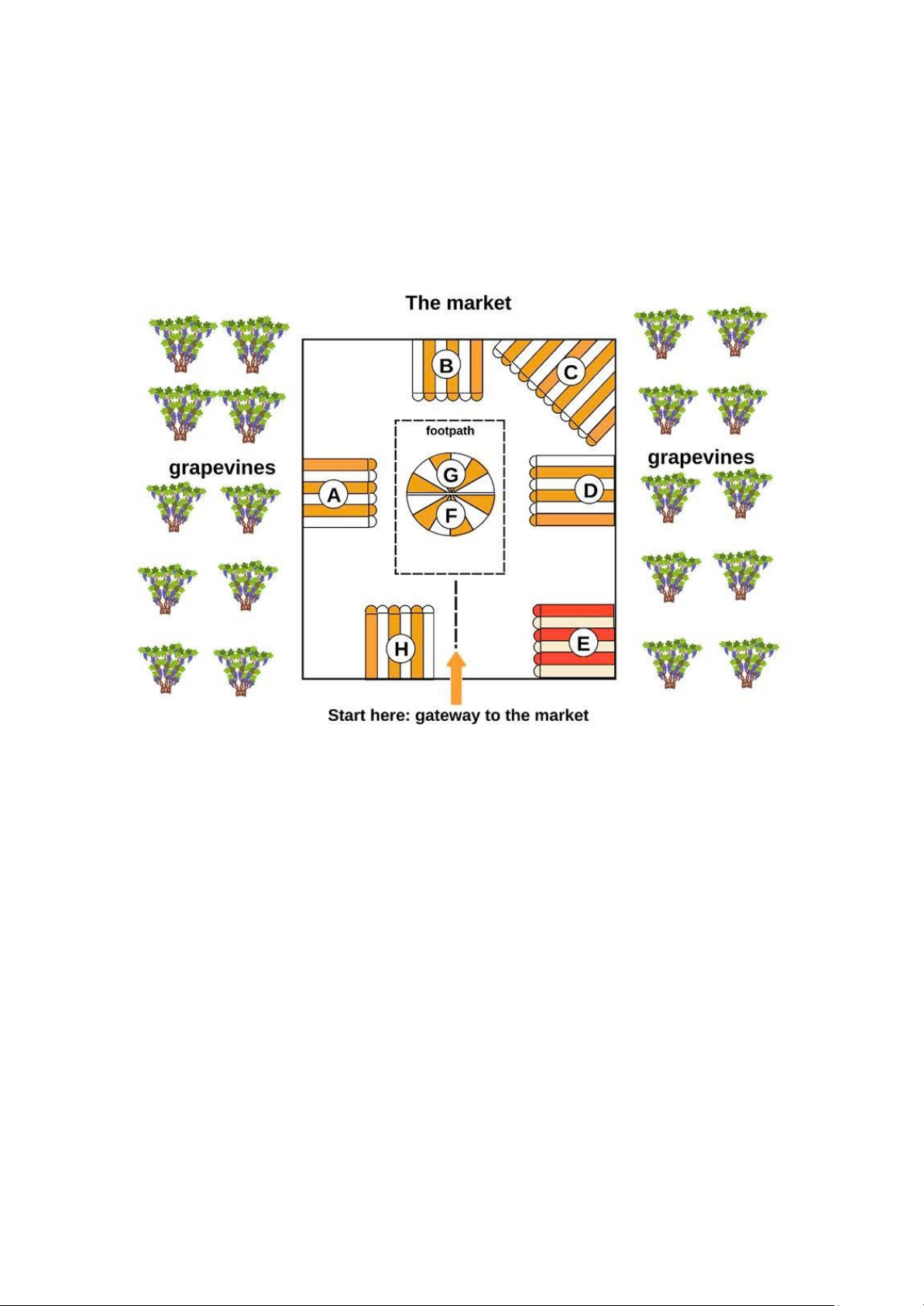 Choose SIX correct letters, A-l, next to questions 11-16. Information A pure B expensive C perfumed D best value for money E imported F made in the vil age G popular overseas H prize-winning I coloured Products 11 hand cream ……………… 12 jam ……………… 13 soaps ……………… 14 candles ……………… 15 ice cream ……………… 16 shampoo ……………… Questions 17-20 Label the map below.