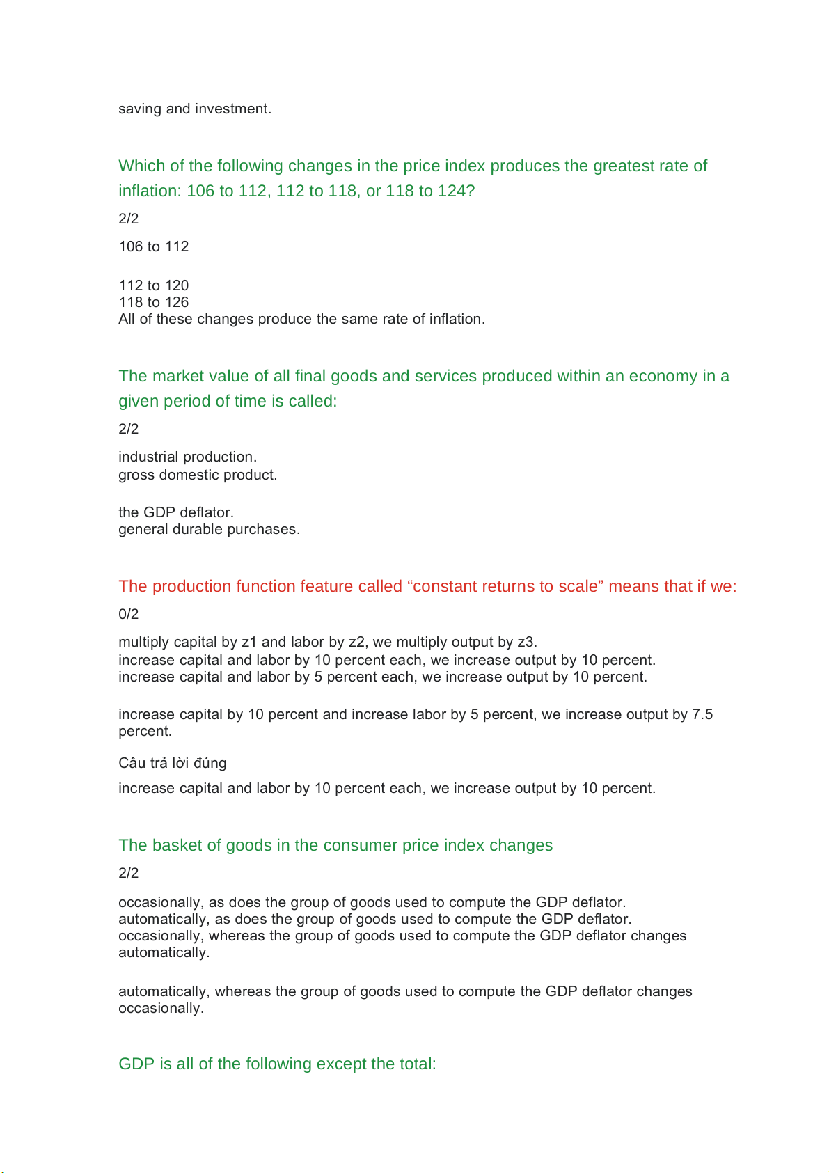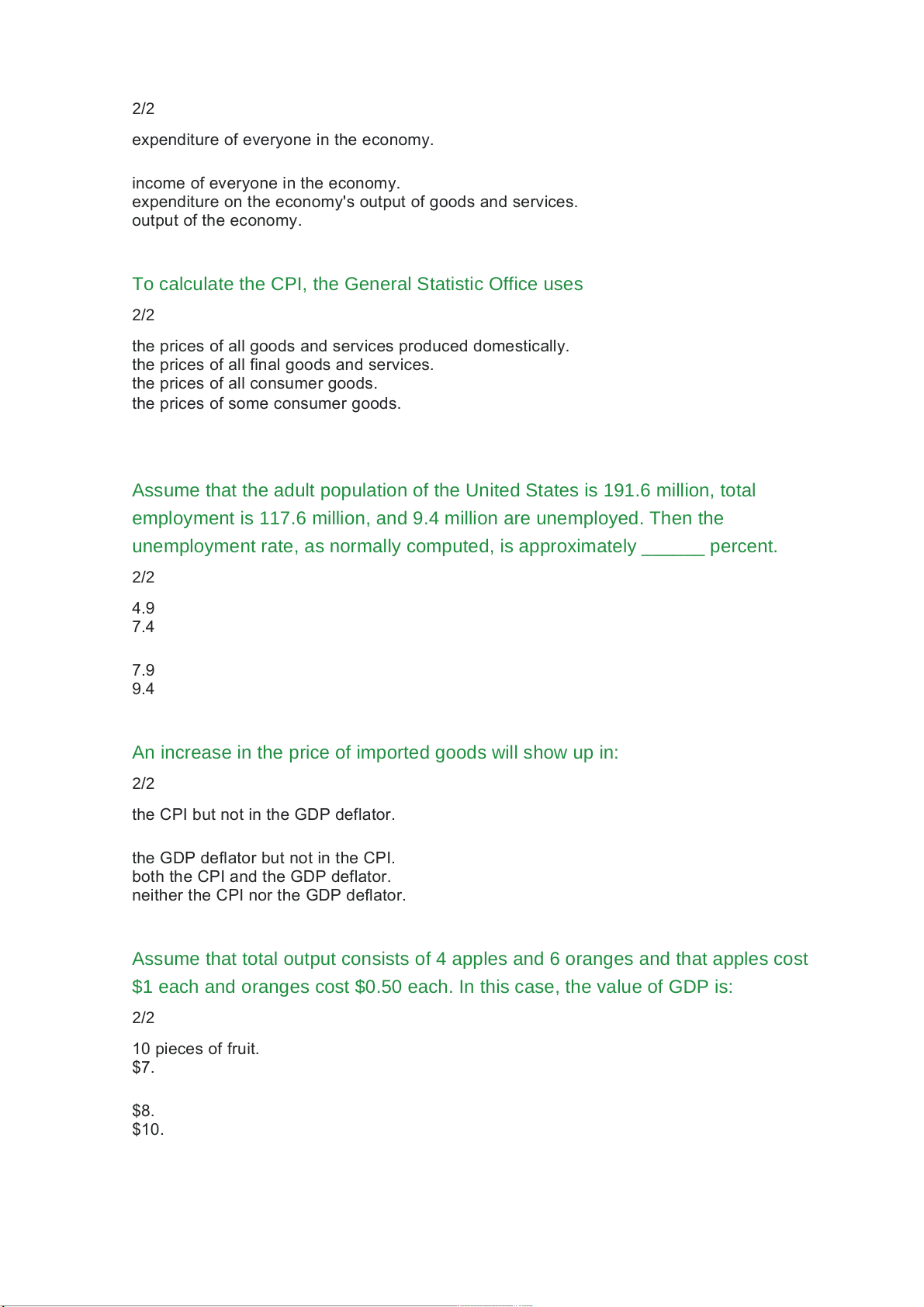 GDP is all of the following except the total: 2/2