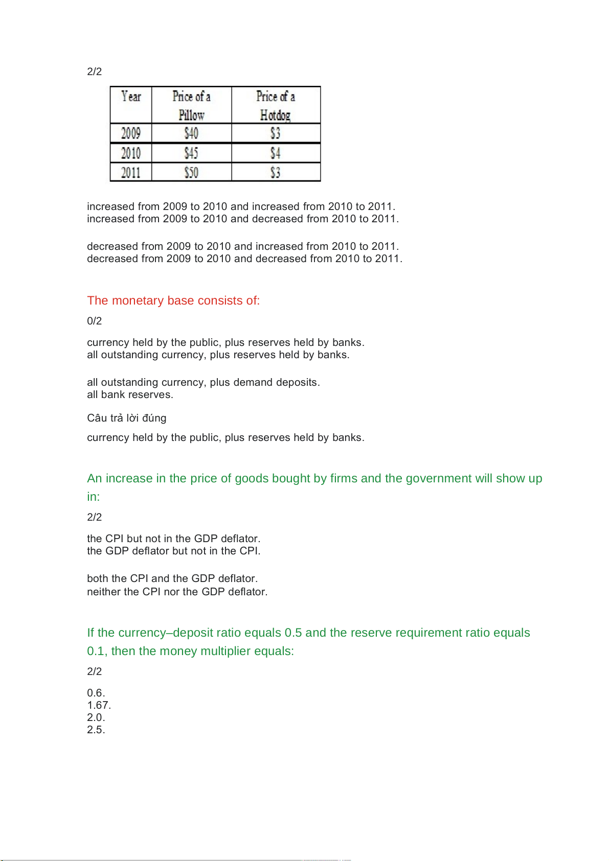 decreased from 2009 to 2010 and decreased from 2010 to 2011. The monetary base consists of: 0/2