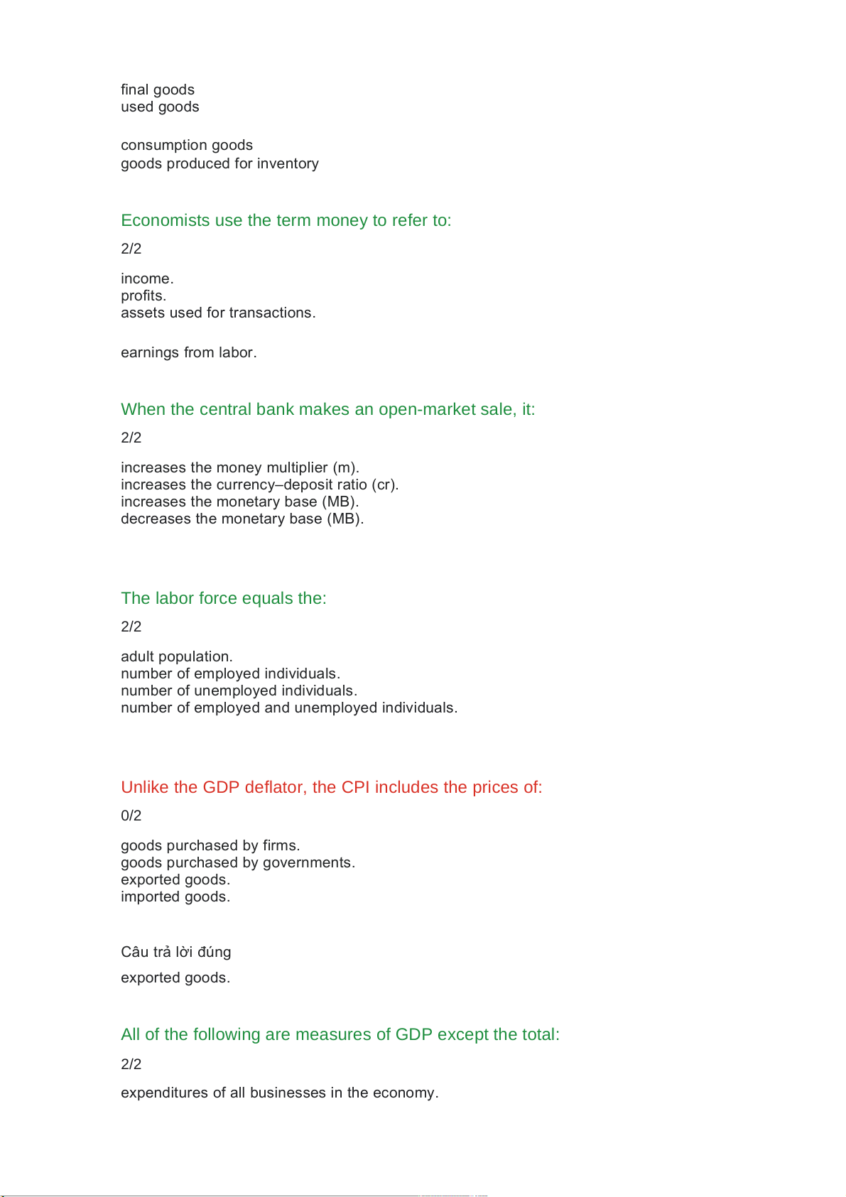 goods purchased by governments. exported goods. imported goods. Câu trả lời đúng exported goods.