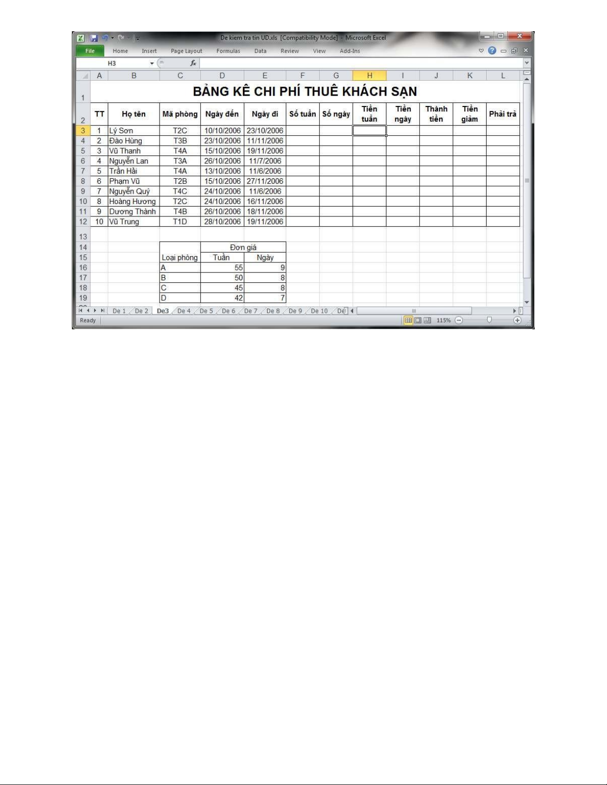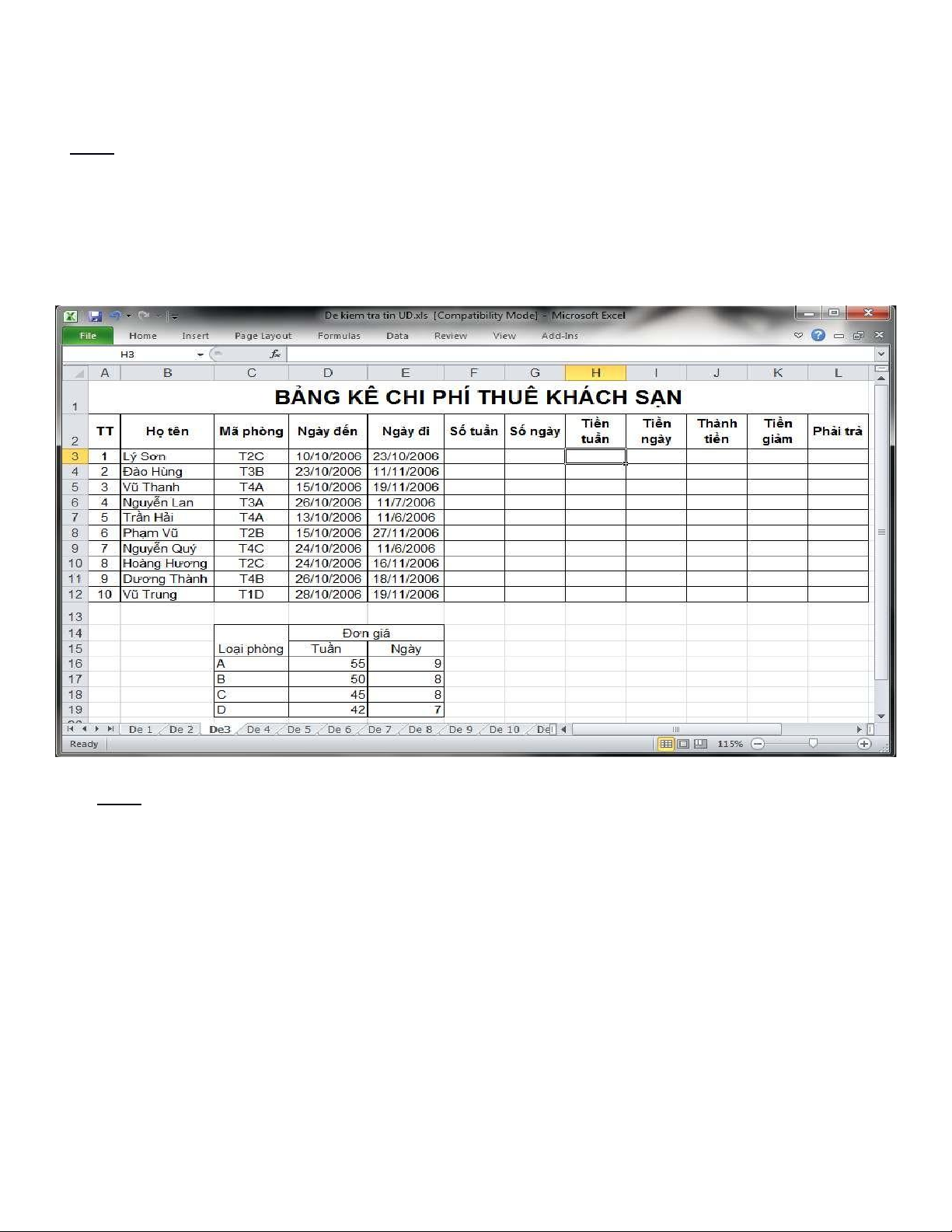 - Nếu số ngày ở >25 thì được giảm 5% lOMoAR cPSD| 45474828 Bài 3 :
