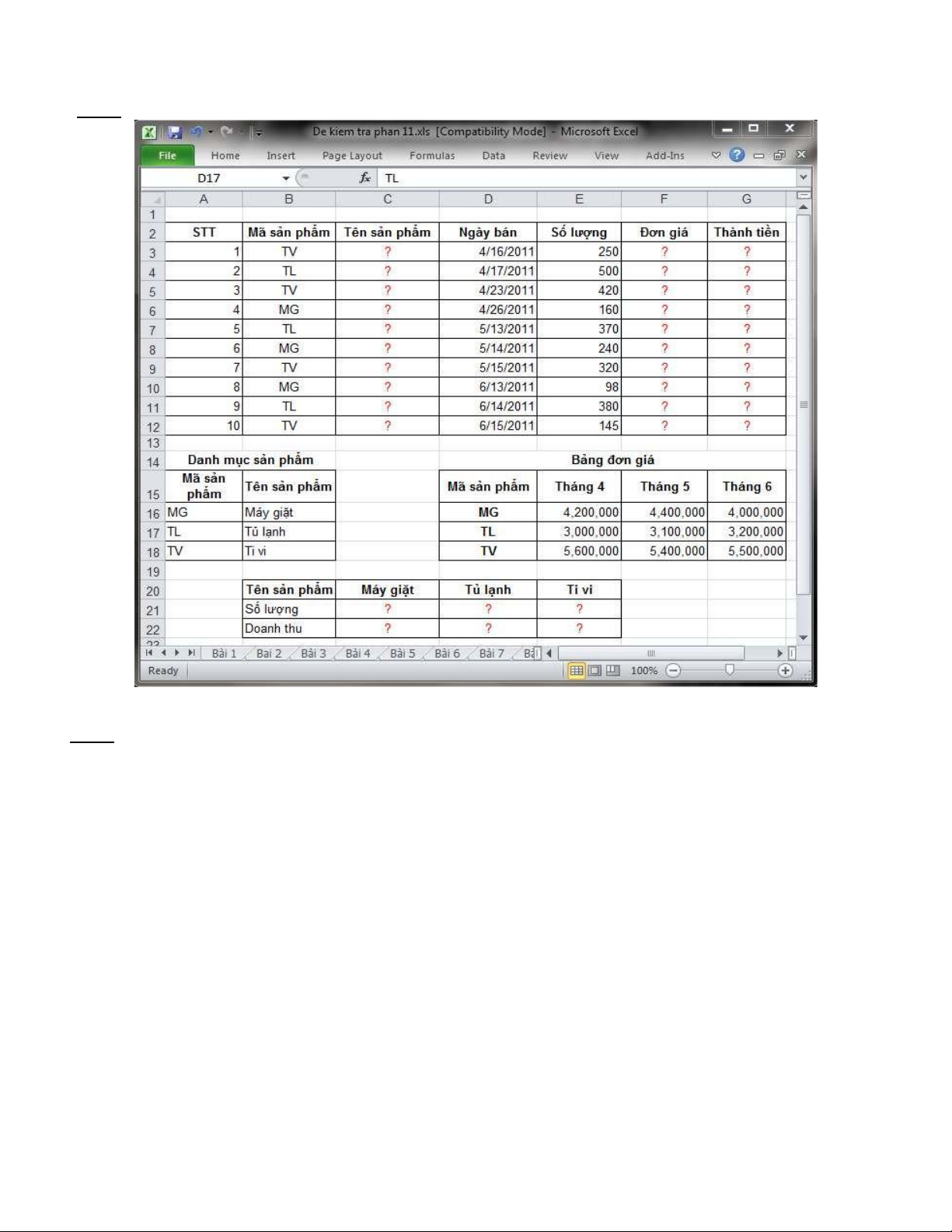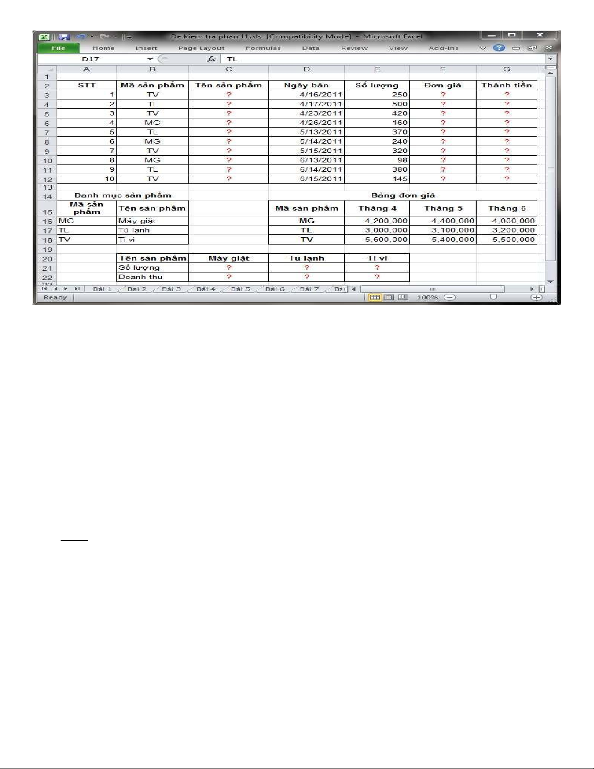 Bài 1: Hãy thực hiện các yêu cầu trong bảng