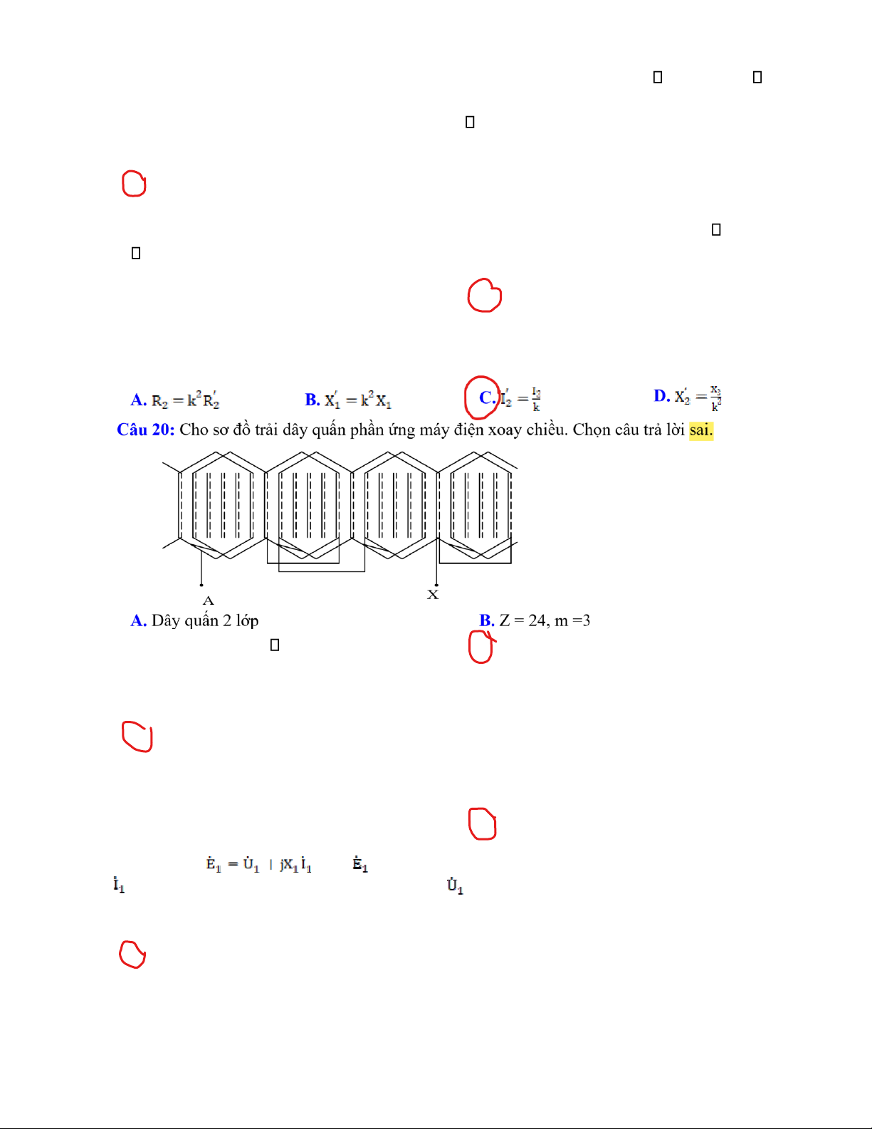Thông số nào sau đây sai: A. sdm = (2~6)% B. Mmm = C. io = (10~15)% D. Mmax = (1,1~1,7)Mdm (1,8~2,4)Mdm Trang 2/6