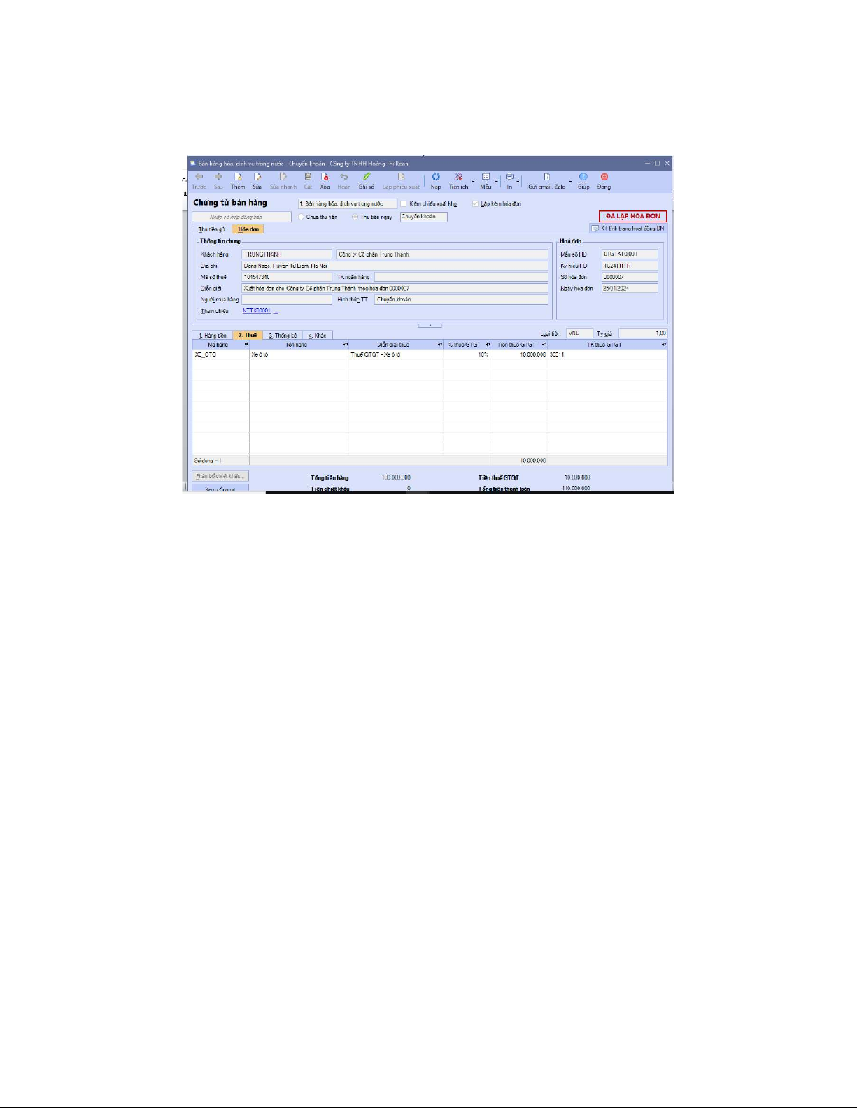Bước 2: Nhập liệu tab hóa đơn