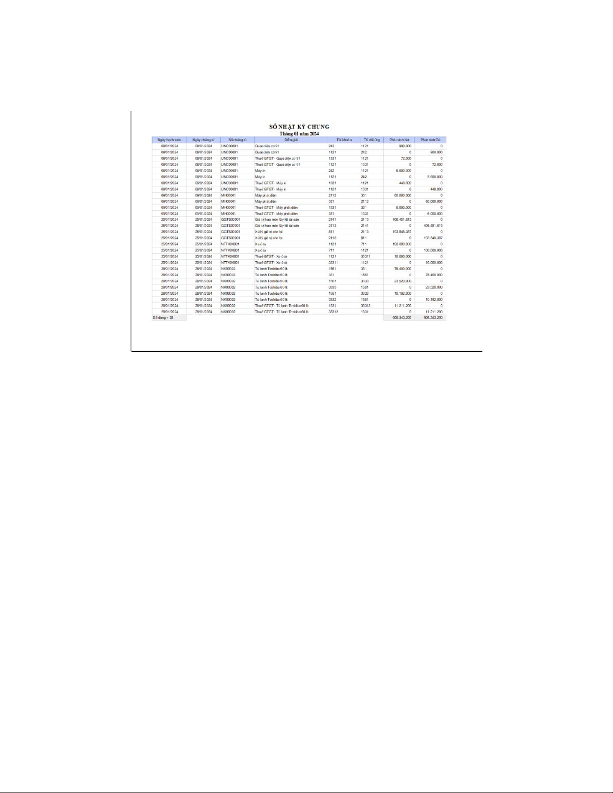 III. Yêu cầu 3: Xuất sổ nhật ký chung