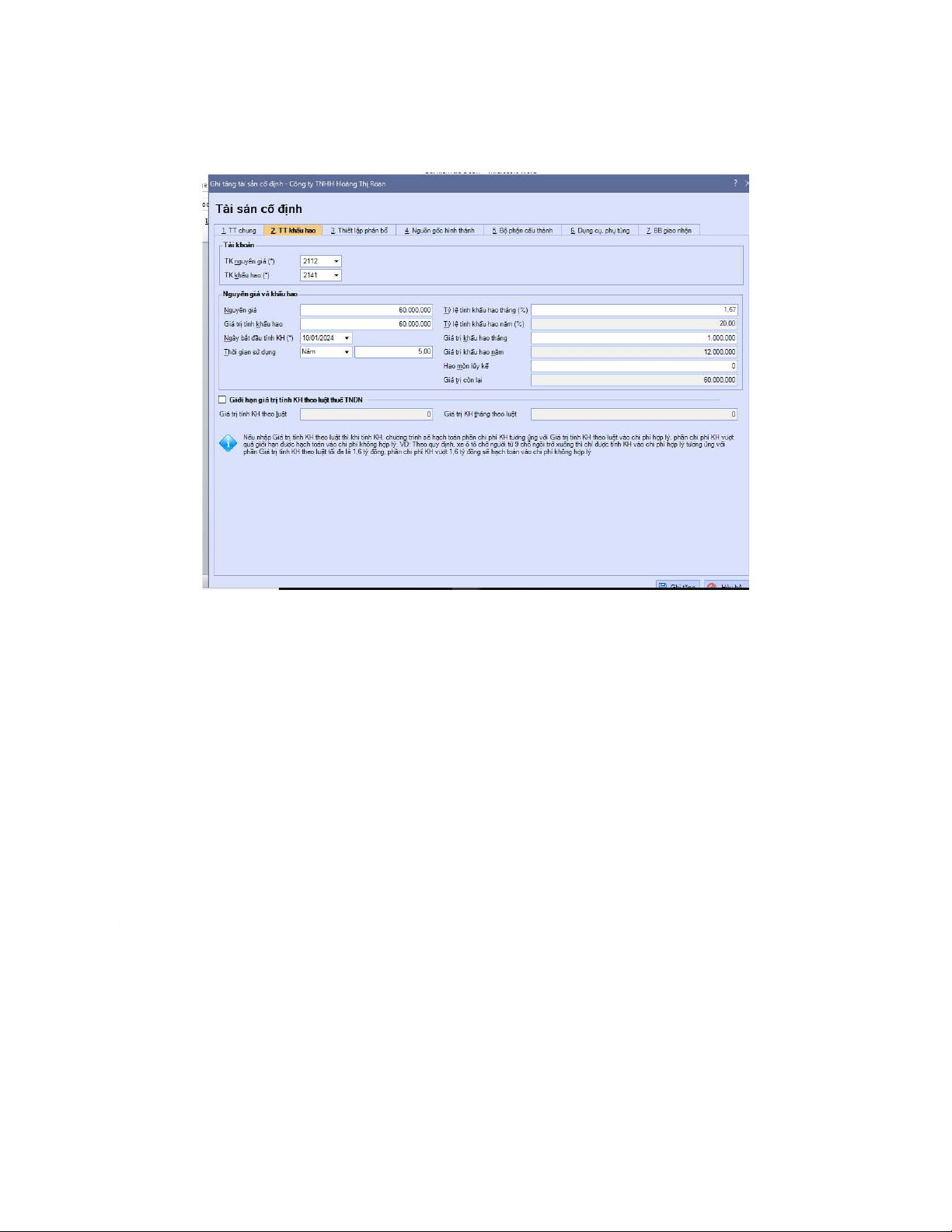 2. Báo tăng tài sản cố định - Bước 1: Thông tin chung Bước 2: TT khấu hao