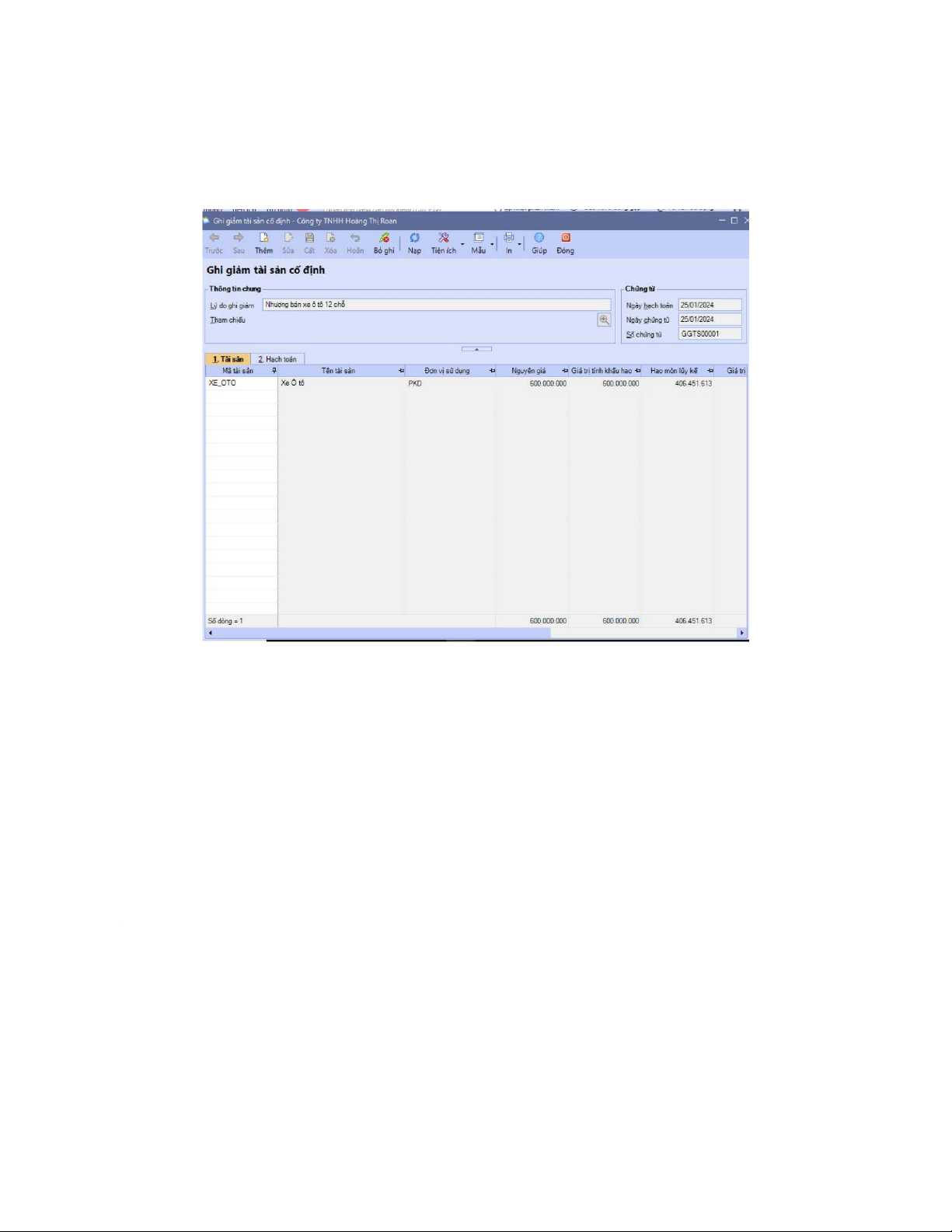 1. Ghi giảm tài sản cố định