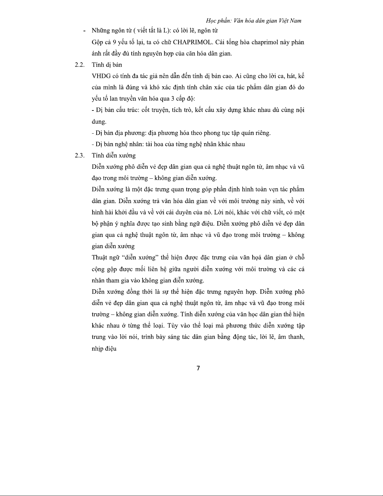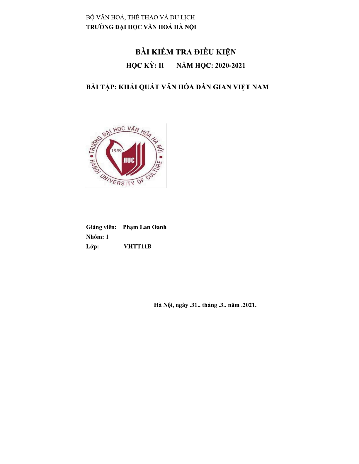 Bài Kiểm Tra Văn Hoá Dân Gian Việt Nam - VHTT11B Học Kỳ II
