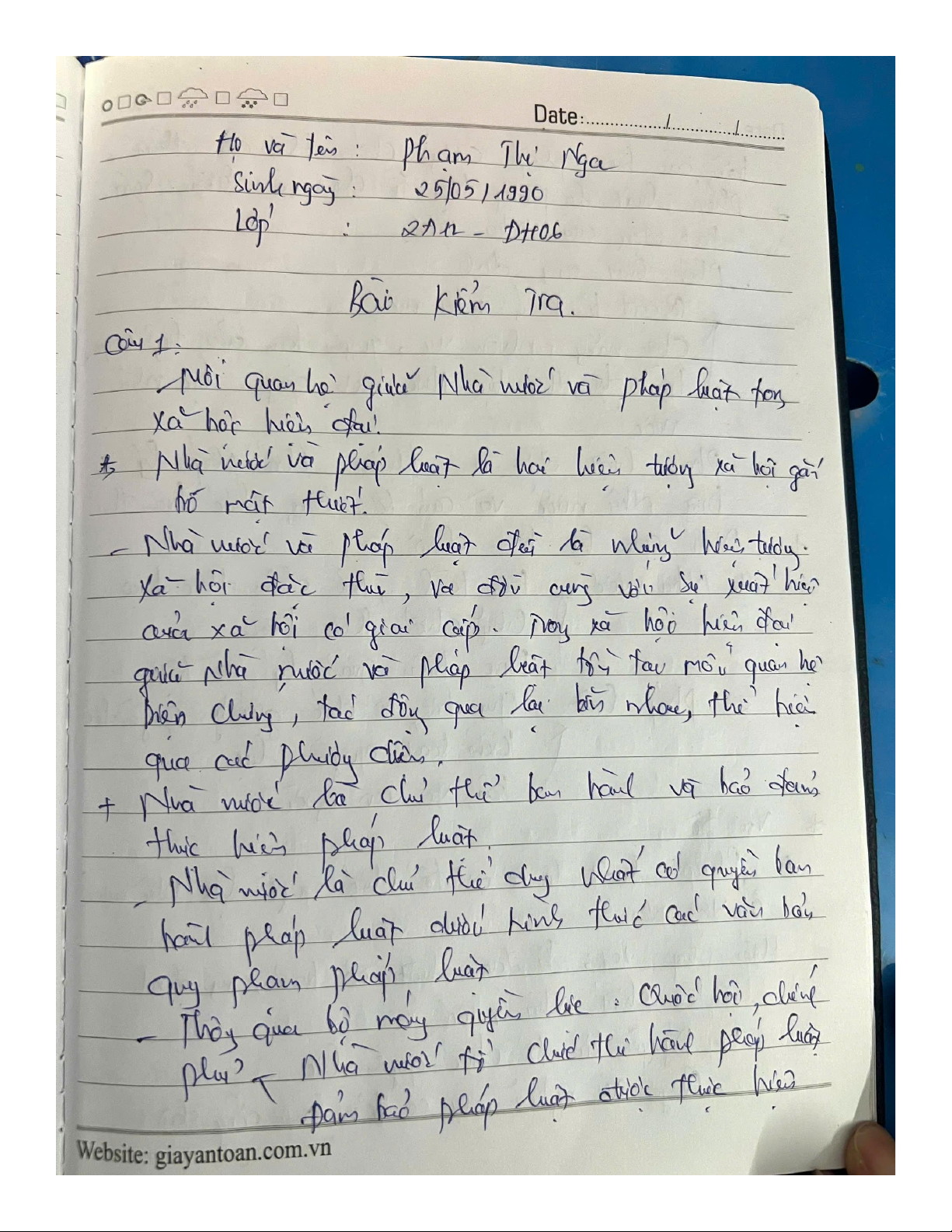Bài kiểm tra về Nhà nước và pháp luật môn Pháp luật đại cương | Đại học Bách Khoa Hà Nội