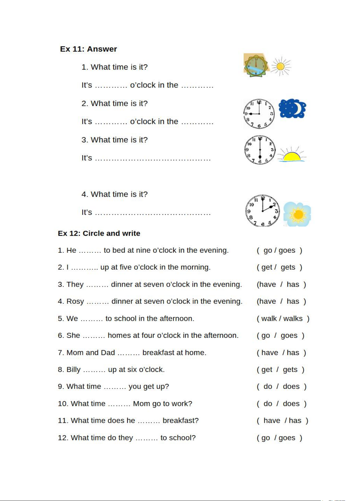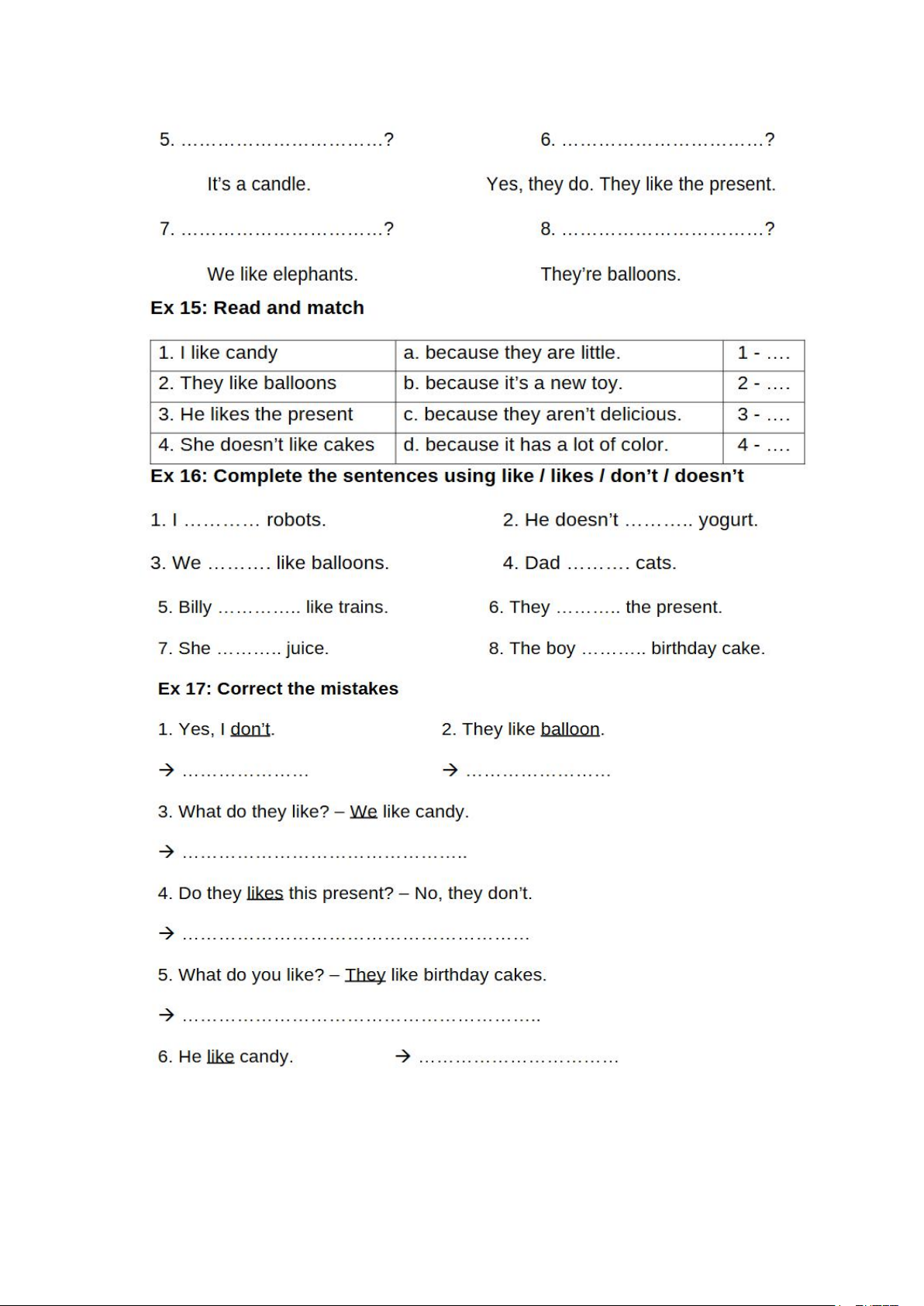 Ex 2: Read and complete the sentences: Ex 3: Answer: Ex 4: Match: