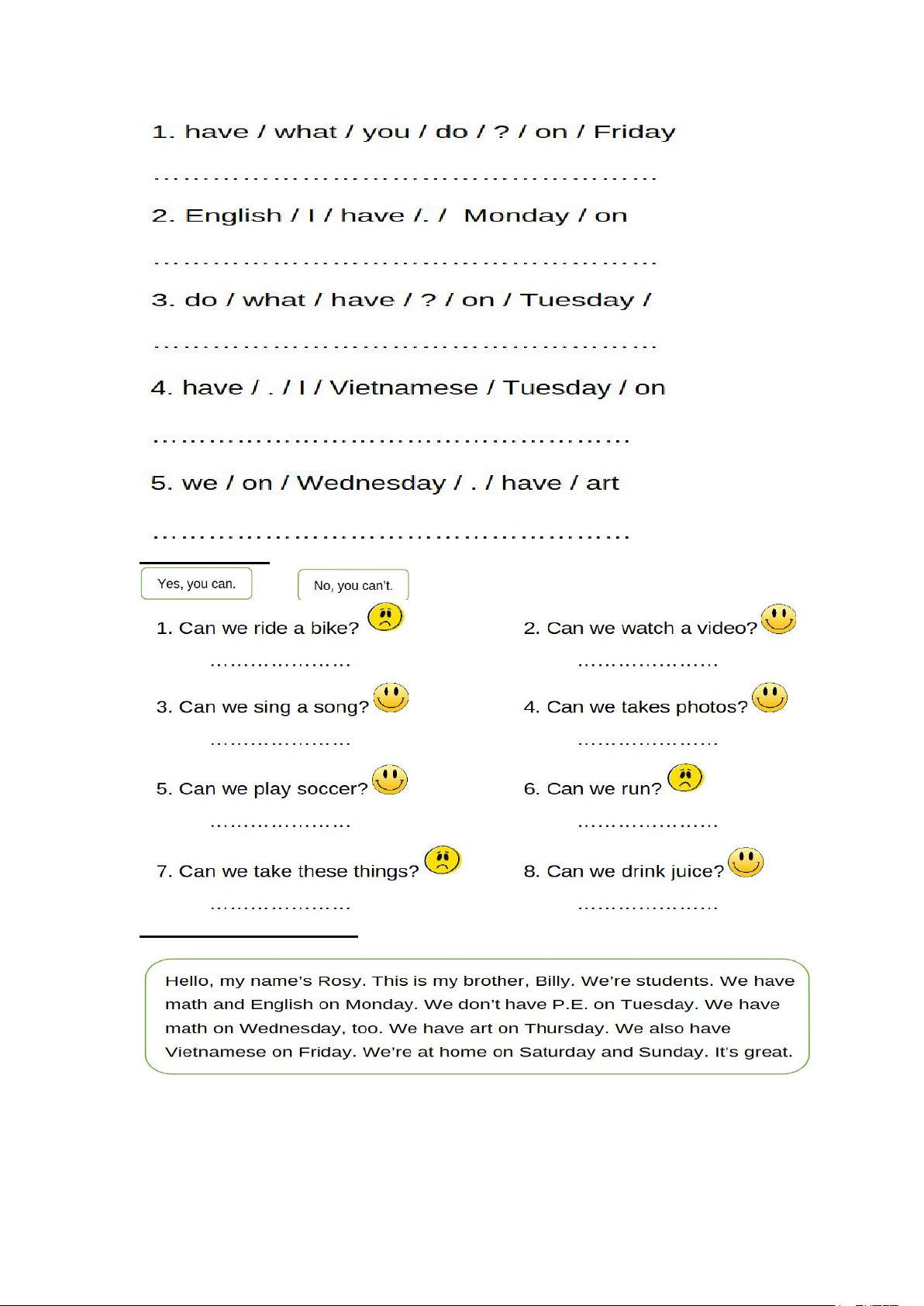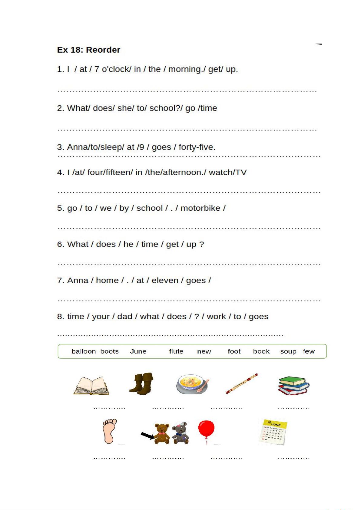 EX 1: Look and write: EX 2: Answer: Vietnamese EX 3: REORDER: Ex 4: Answer: