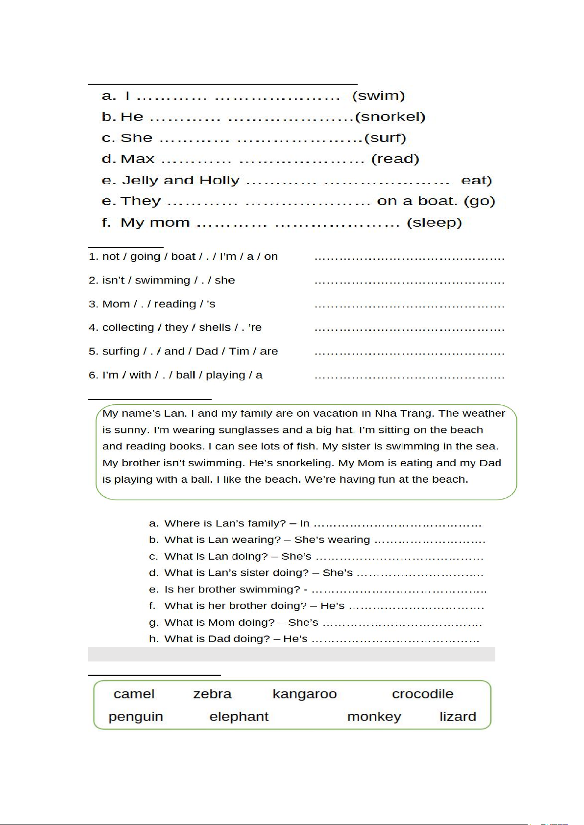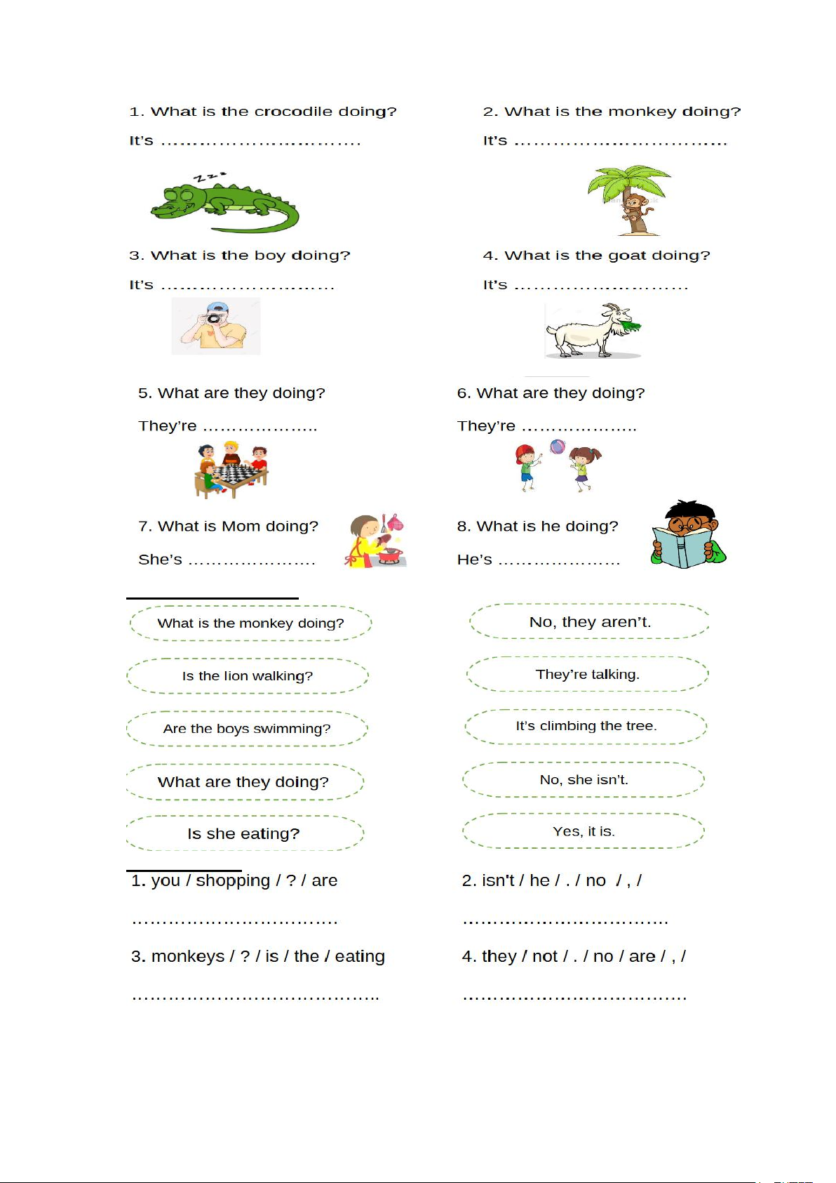 Ex 4: Comple the sentences with ‘m, ‘s, ‘re +V-ing: Ex5: Reorder:
