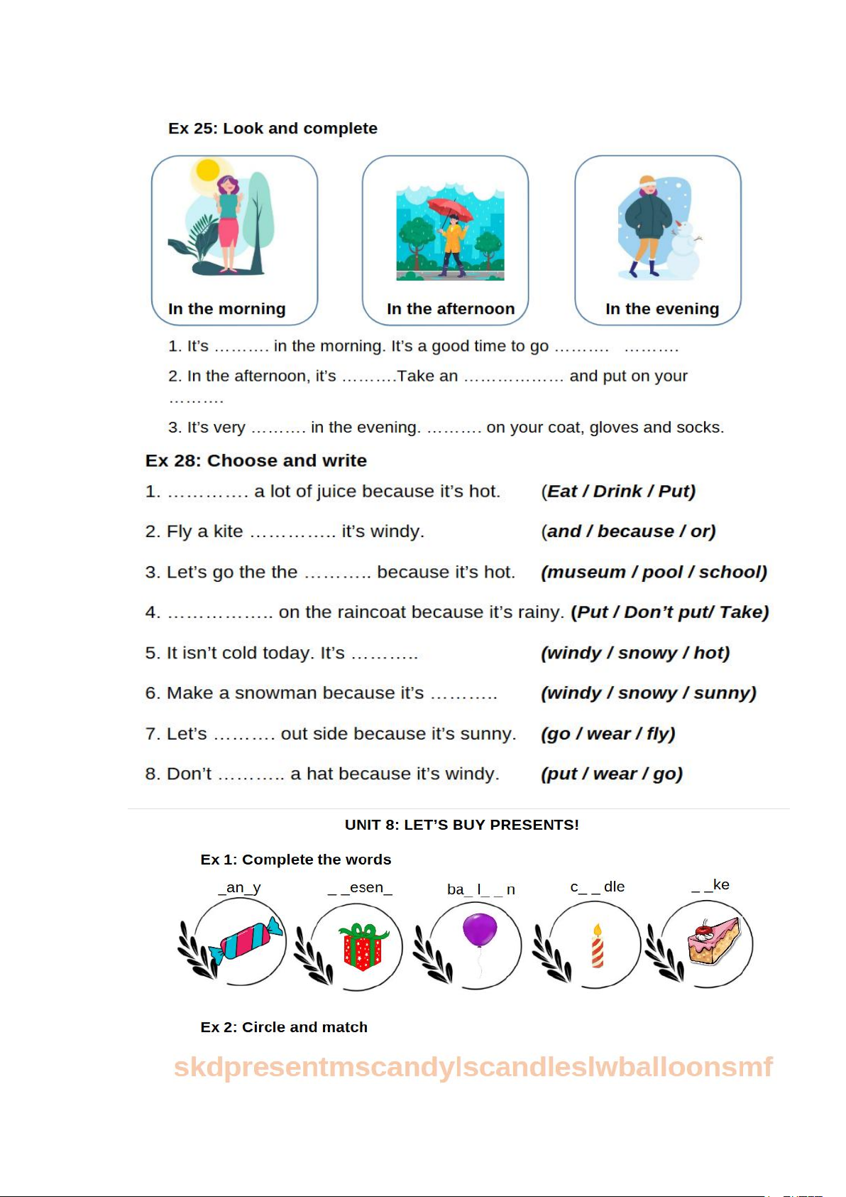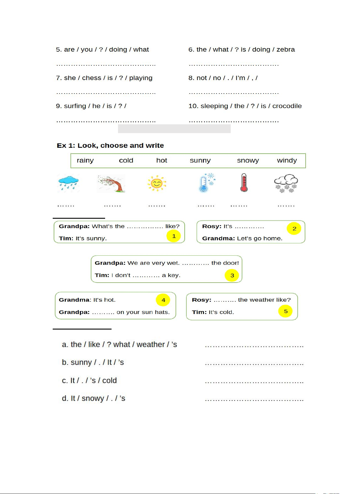UNIT 7: IT ISN’T COLD TODAY EX 2: Complete: EX 3: REORDER EX 4: COMPLETE EX 5: READ AND CIRCLE:
