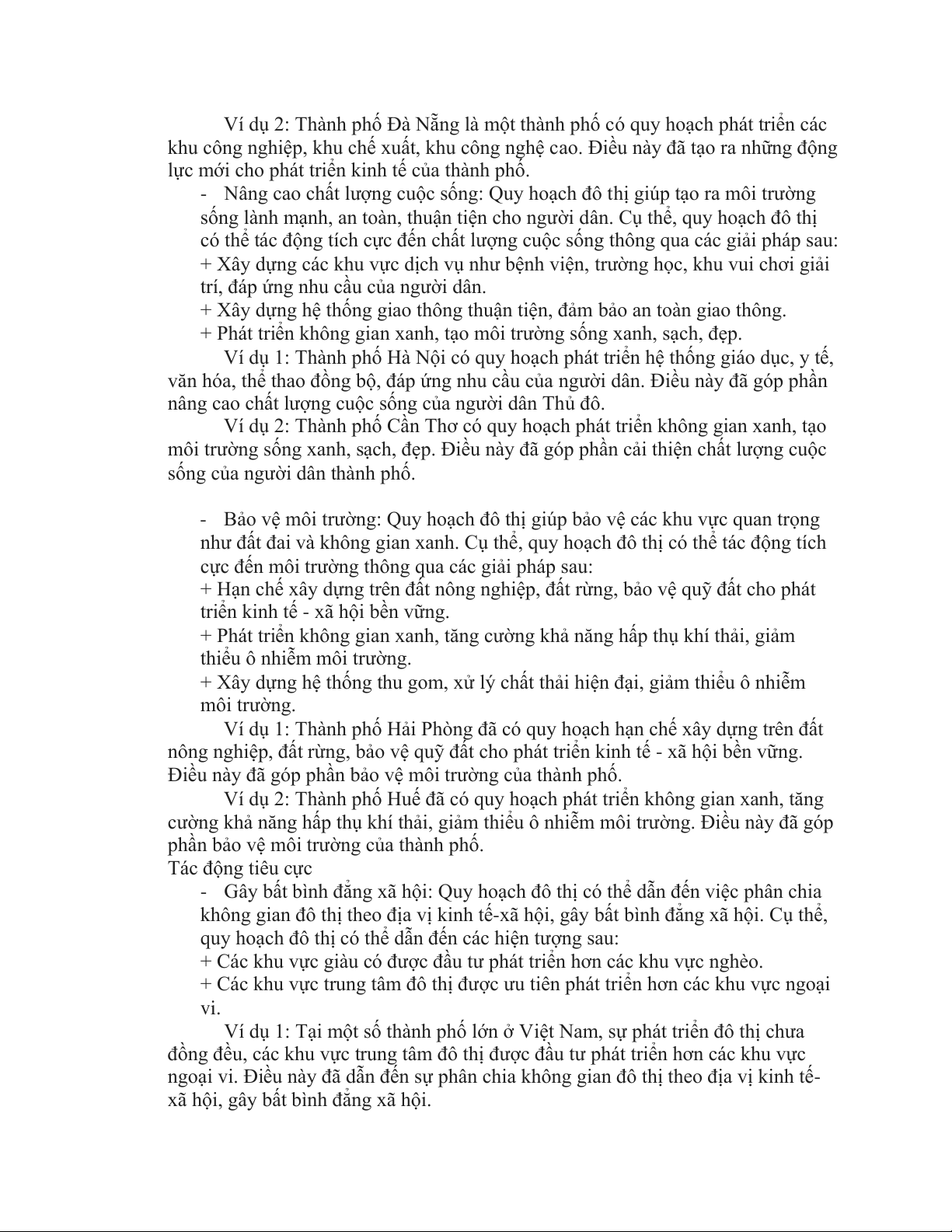 vi. Ví dụ 1: Tại một số thành phố lớn ở Việt Nam, sự phát triển đô thị chưa