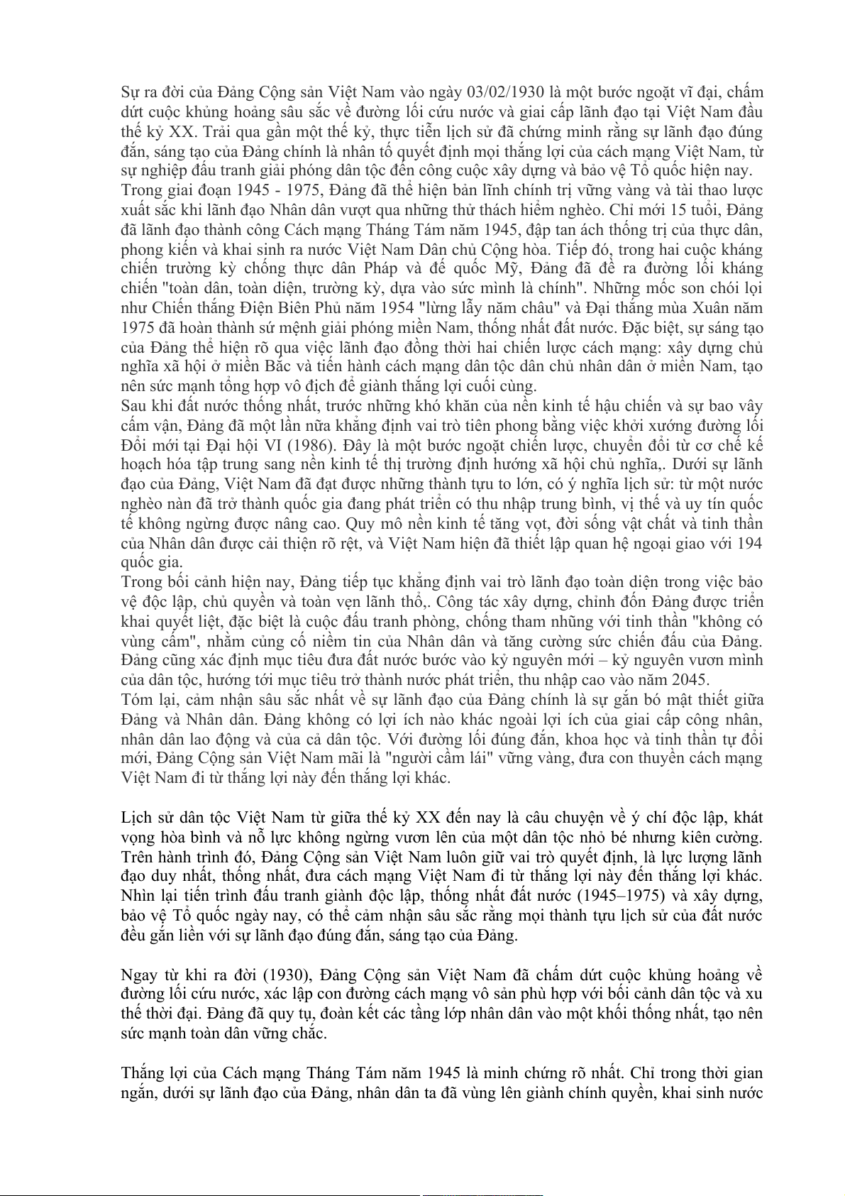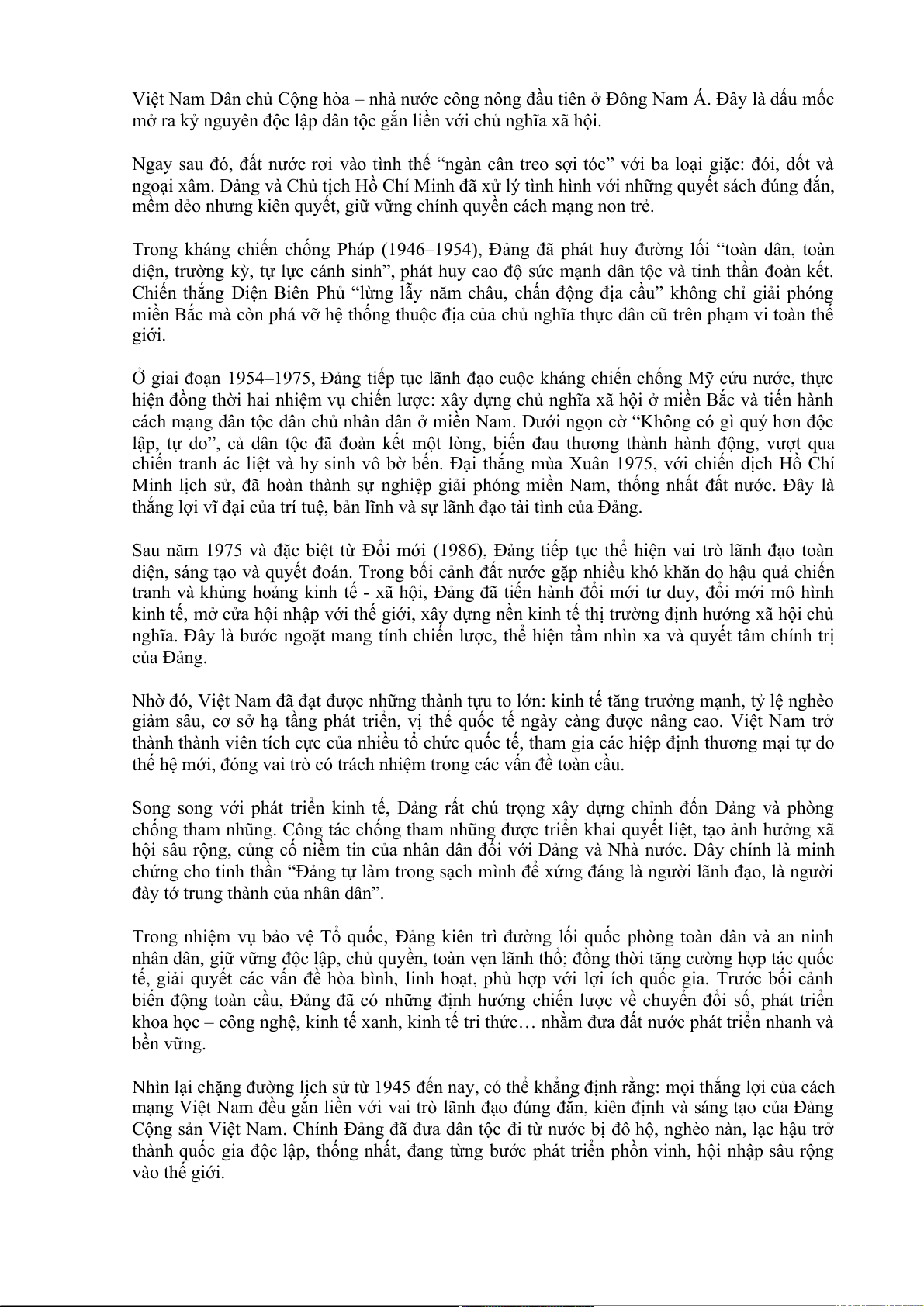 Cộng sản Việt Nam. Chính Đảng đã đưa dân tộc đi từ nước bị đô hộ, nghèo nàn, lạc hậu trở