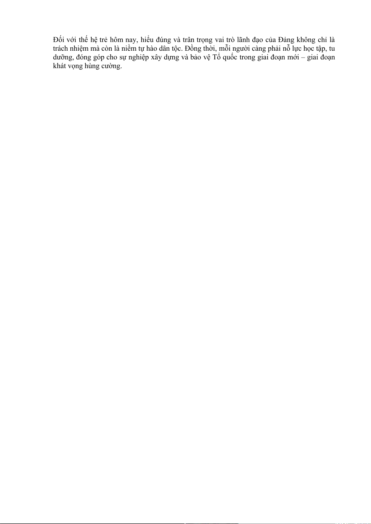 Đối với thế hệ trẻ hôm nay, hiểu đúng và trân trọng vai trò lãnh đạo của Đảng không chỉ là