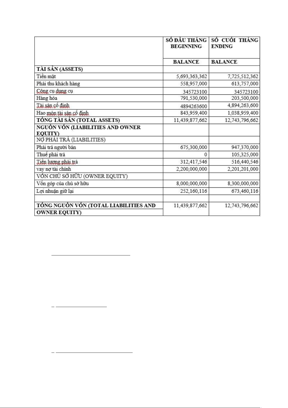 252,160,116 + 312,417,546 + 2,200,000,000 + 675,300,000 + 8,000,000,000 +  2    lOMoAR cPSD| 47206417   Nguyên lý kế toán  Nhóm 4