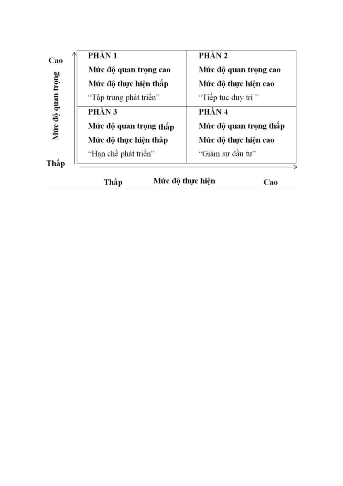 Hình 2.2 Mô hình phân tích mức độ quan trọng và mức độ thực hiện