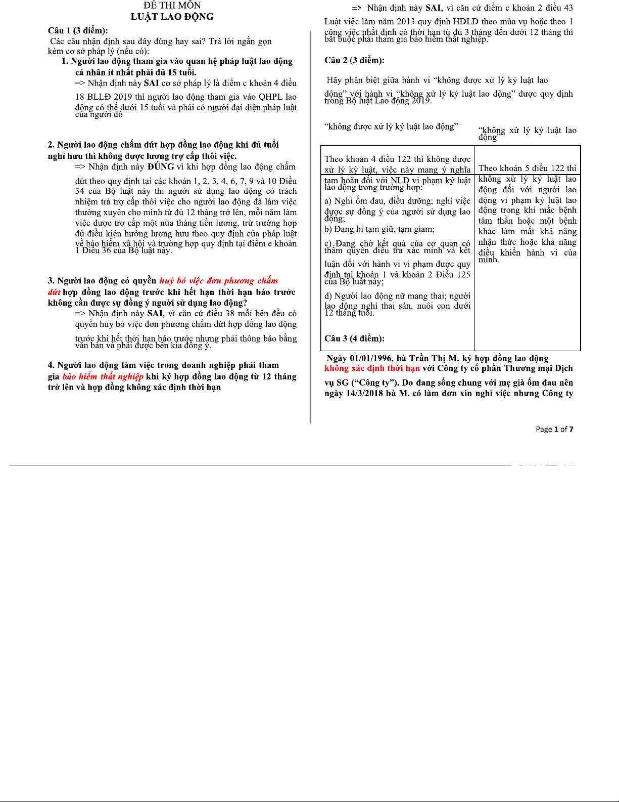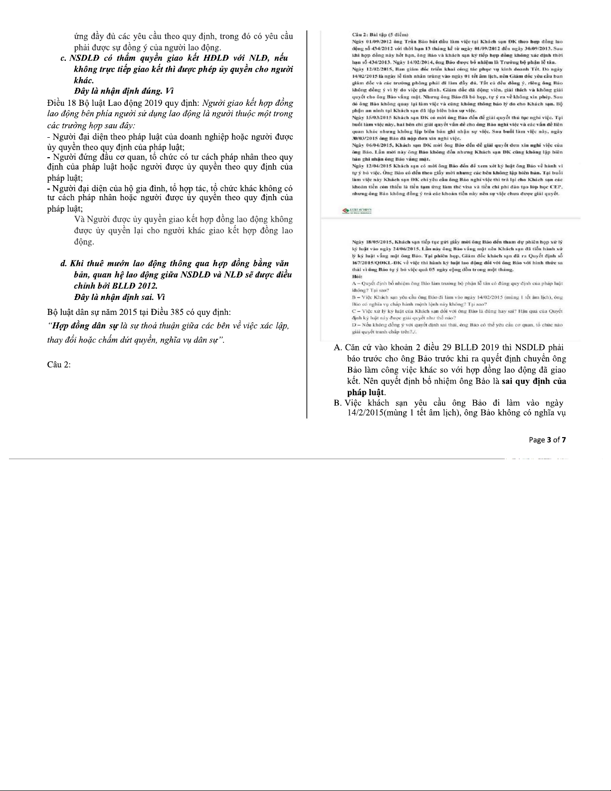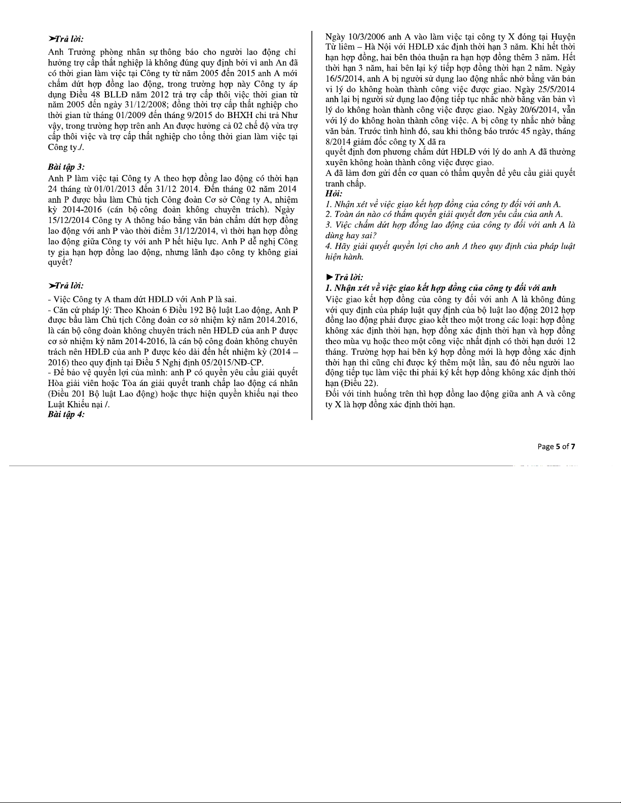Bài ôn tập - Đề thi môn Luật Lao động (Code: LLĐ)