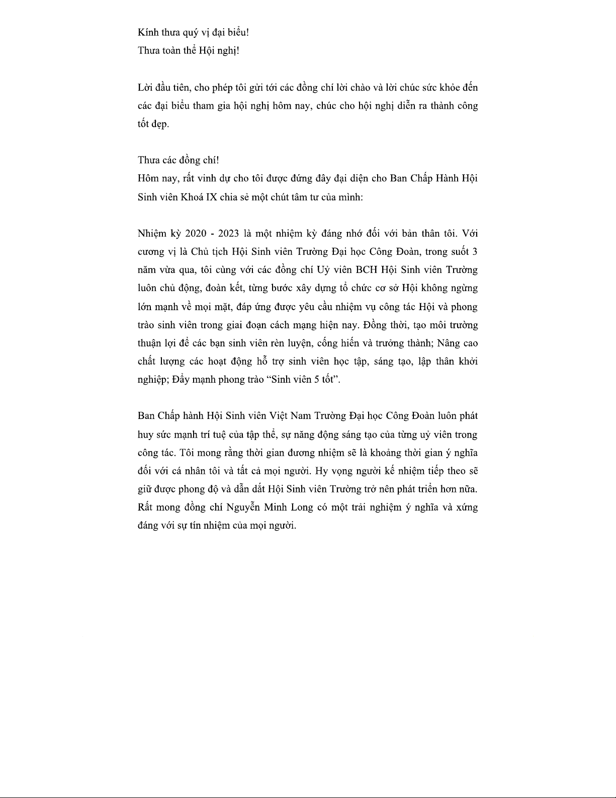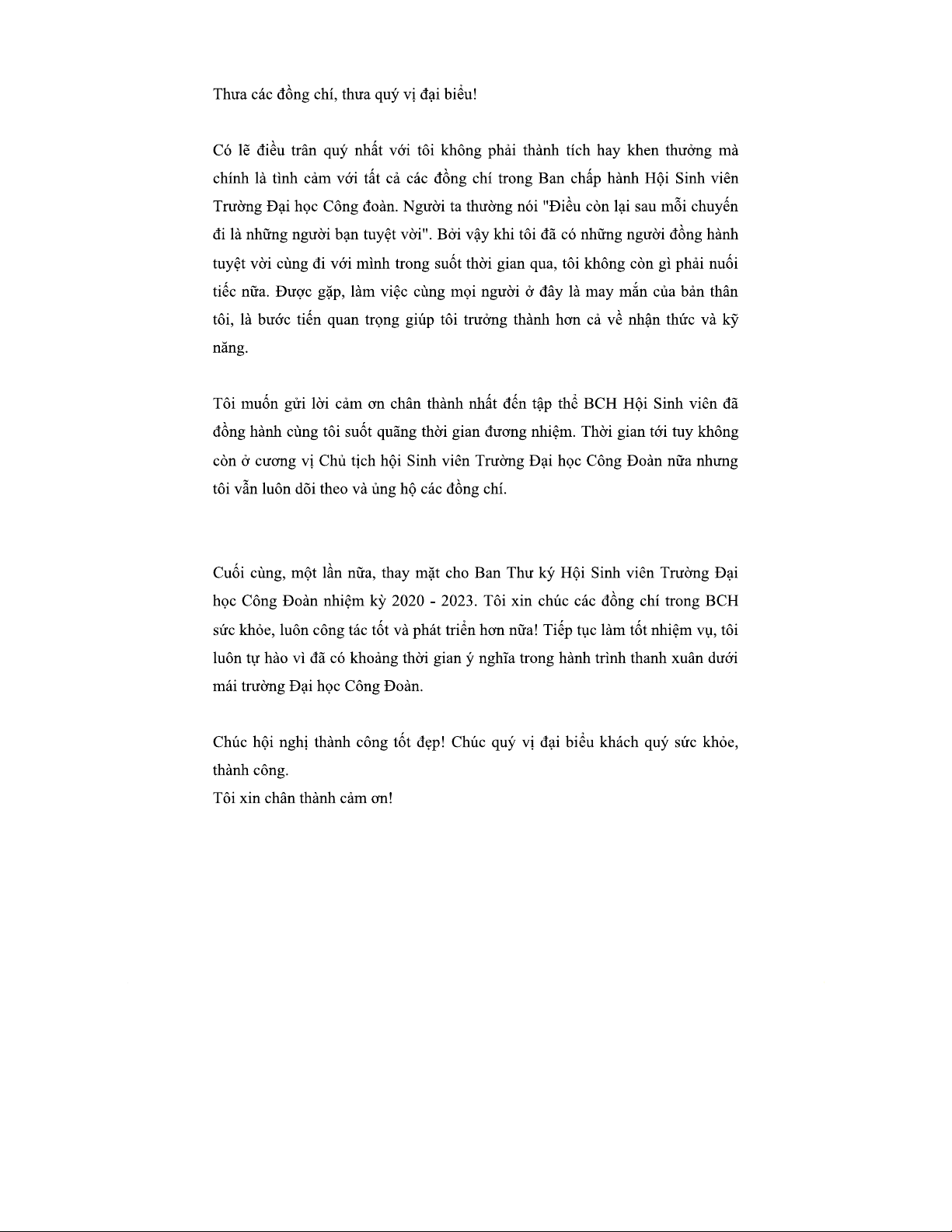 Bài Phát Biểu Chia Tay Nhiệm Kỳ 2020 - 2023 Tại Trường Đại Học Công Đoàn