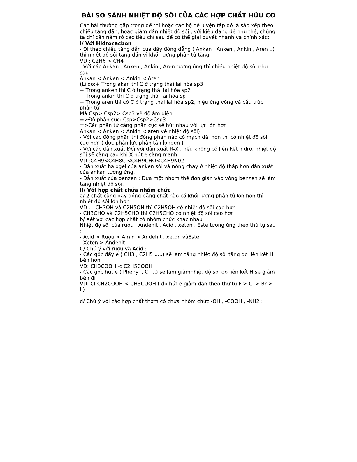 BÀI SO SÁNH NHIỆT ĐỘ SÔI CỦA HỢP CHẤT HỮU CƠ - Tài Liệu Ôn Tập