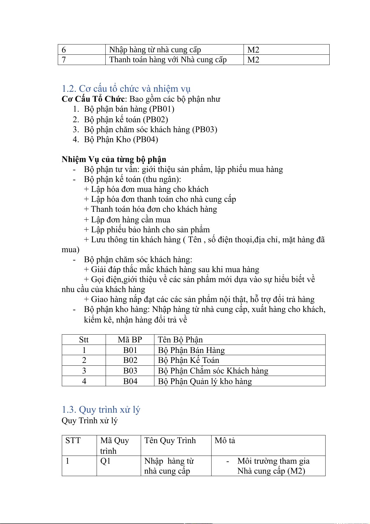 Bộ Phận Quản lý kho hàng 1.3. Quy trình xử lý Quy Trình xử lý STT Mã Quy Tên Quy Trình Mô tả trình 1 Q1 Nhập hàng từ - Môi trường tham gia nhà cung cấp Nhà cung cấp (M2) - Bô Phận tham gia +BP Kế Toán (B02) +BP Kho Hàng (B04) - Mẫu biểu liên quan