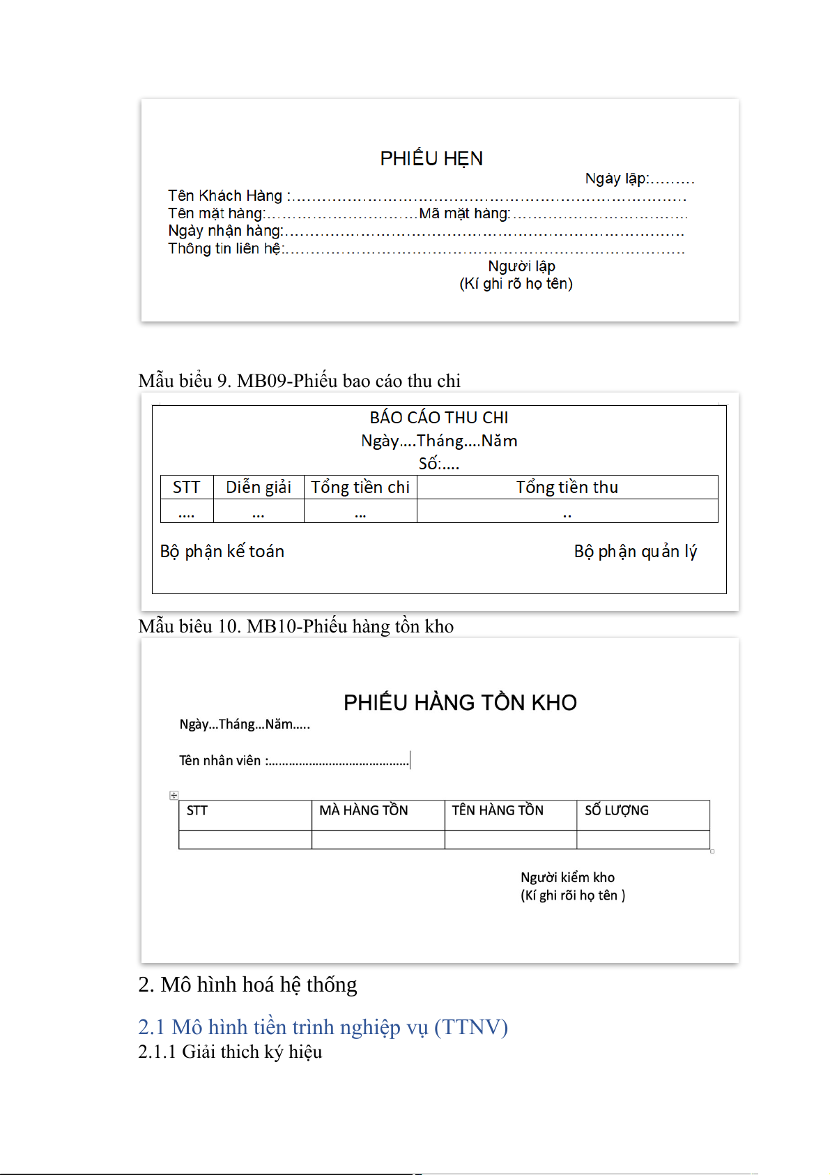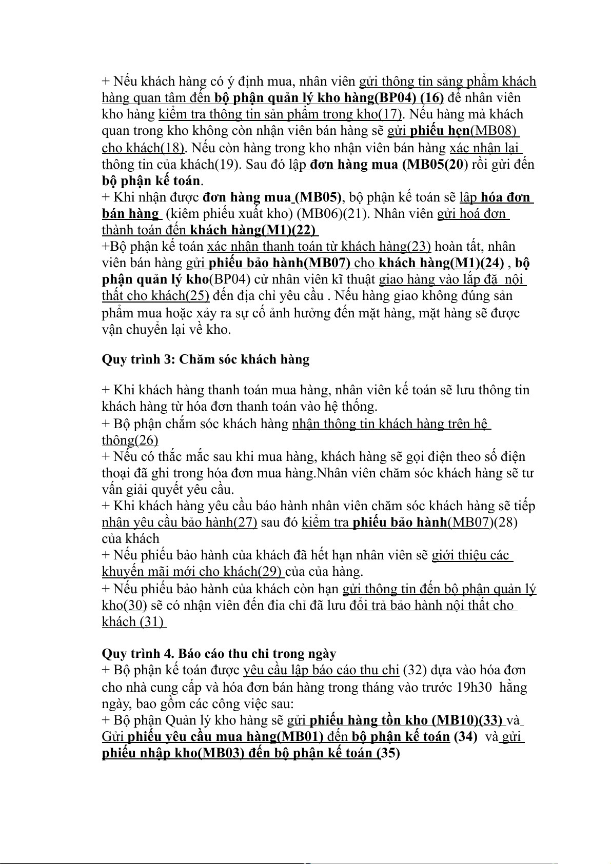 MB02 Phiếu giao hàng từ nhà cung cấp QT1 3 MB03 Phiếu nhập kho QT1 (2) 4 MB04 Hoá đơn mua hàng QT1,QT4 (3) 5 MB10 Phiếu tồn kho QT1 6 MB05 Đơn hàng mua QT2 (4) 7 MB06 Hoá đơn bán hàng QT2,QT4 (5) 8 MB07 Phiếu bảo hành QT2,QT3 9 MB08 Phiếu hẹn QT2 10 MB09 Báo cáo thu chi QT4