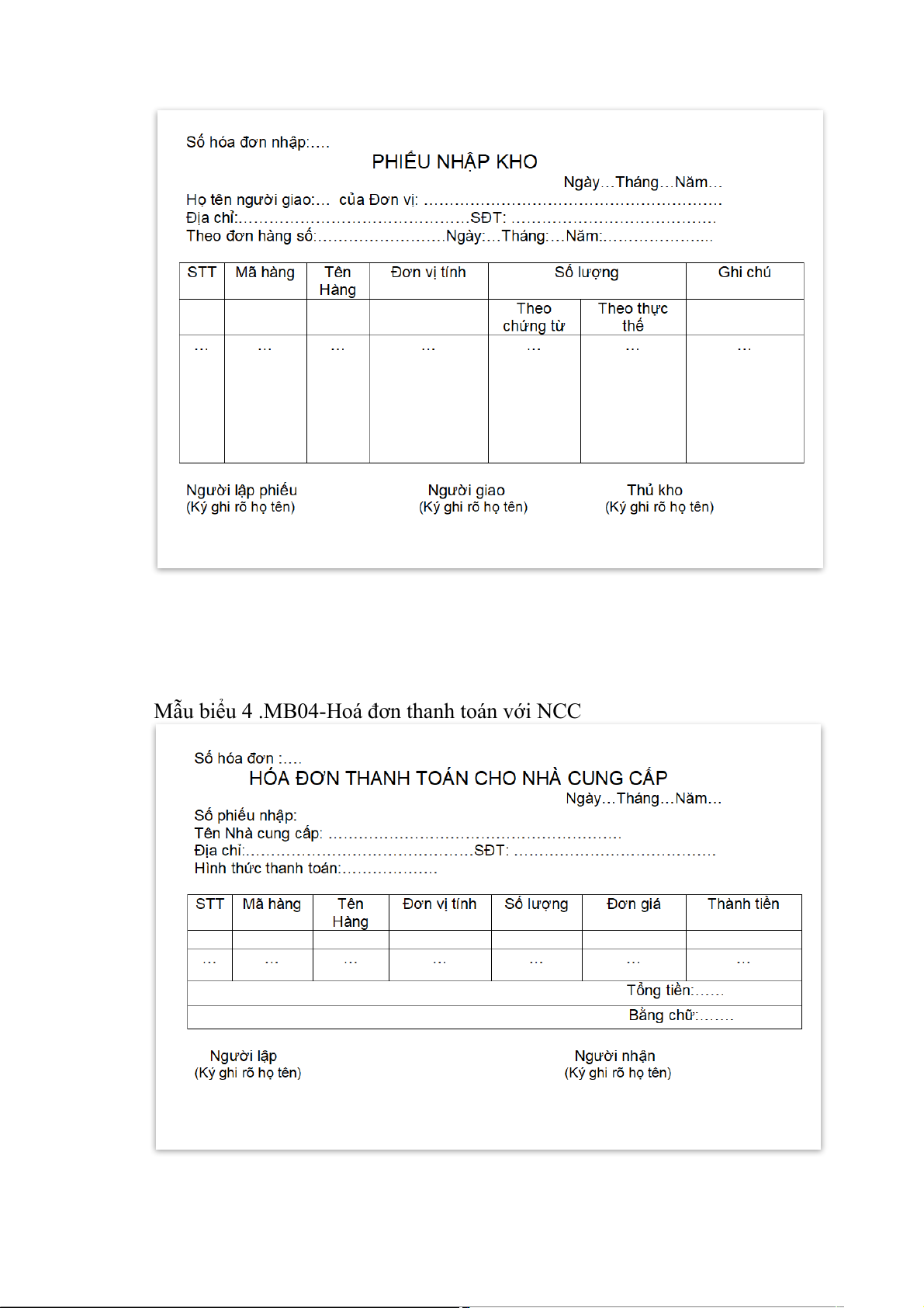 Mẫu biểu 4 .MB04-Hoá đơn thanh toán với NCC
