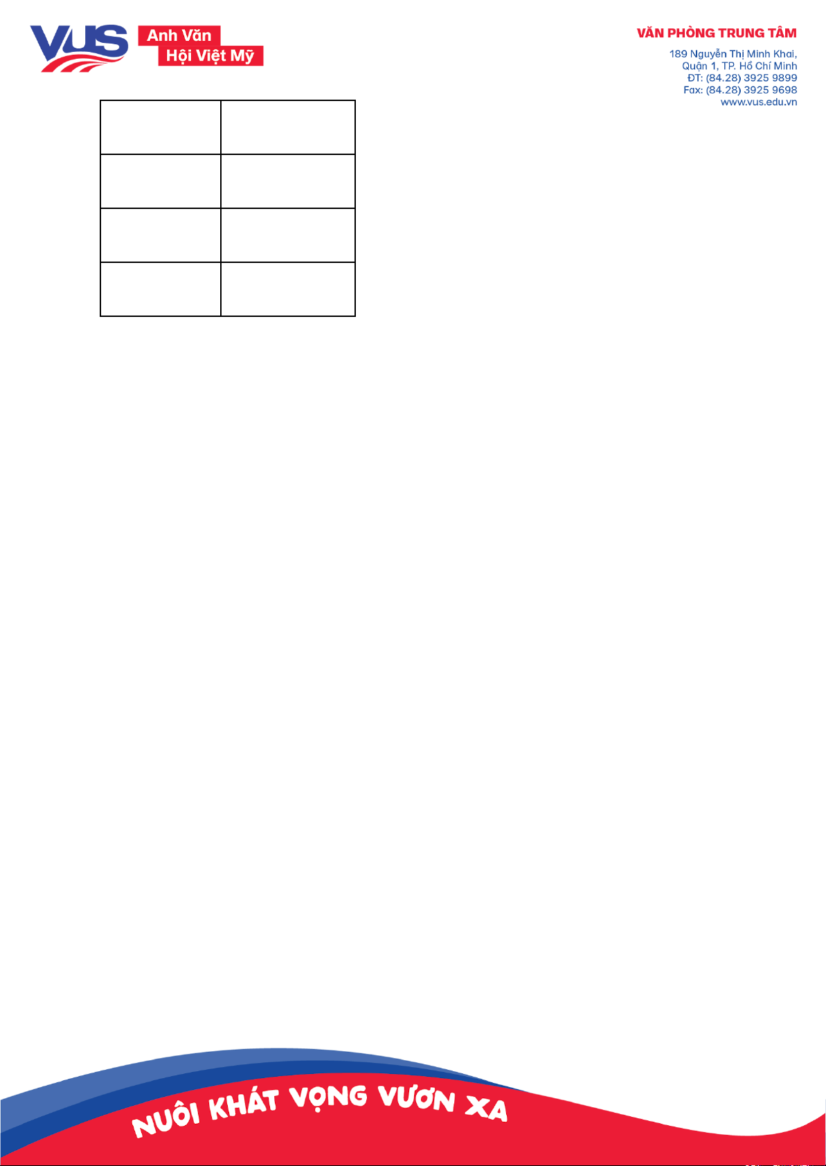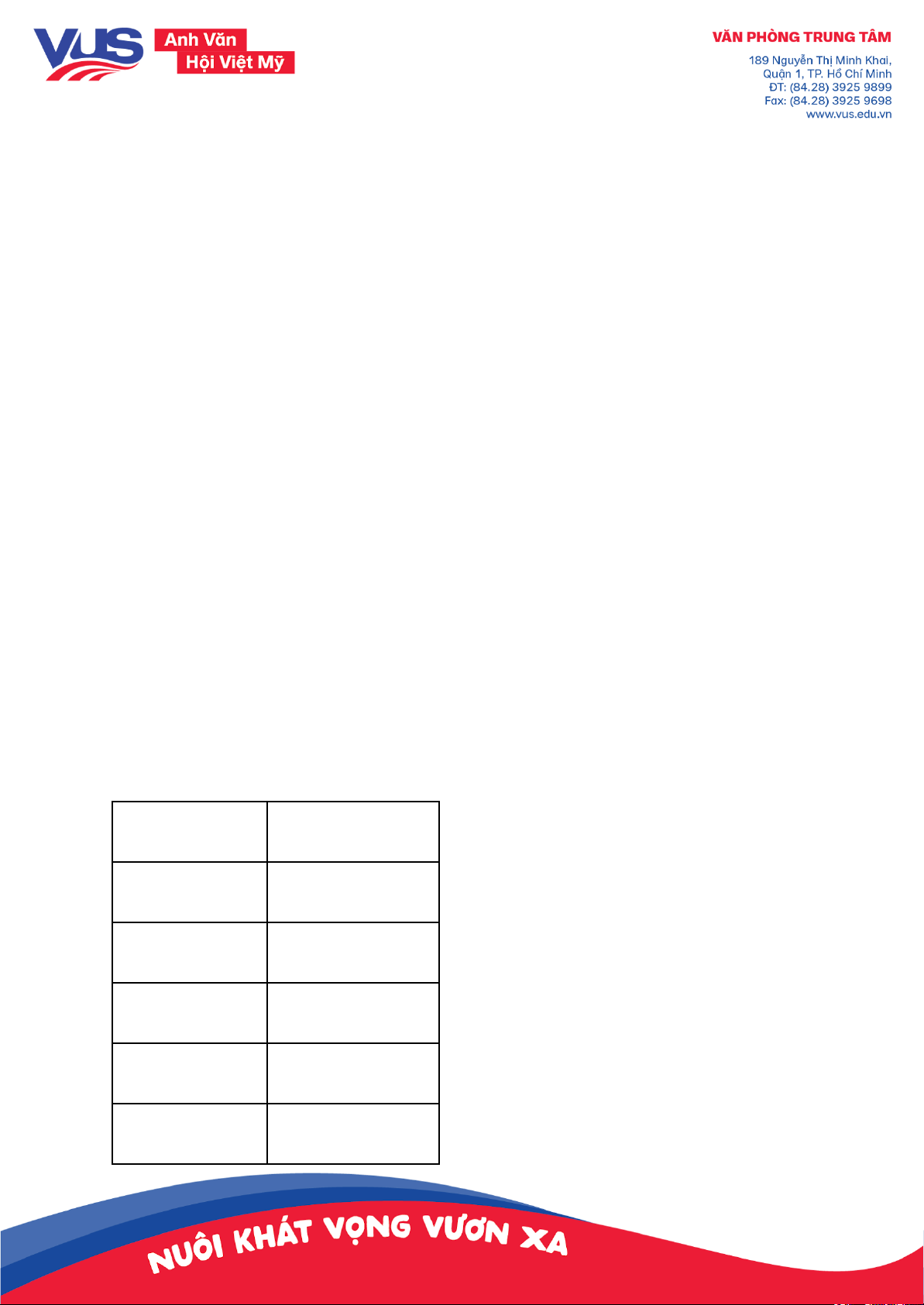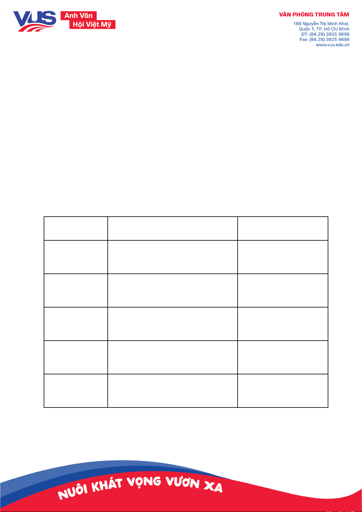 meeting started, John __________ (5. memorize) his main points. Đáp án Đoạn 1 Đoạn 2 1. had dreamed 1. had spent 2. had forgotten 2. had left 3. had called 3. had brought 4. had gone 4. had sent 5. had memorized