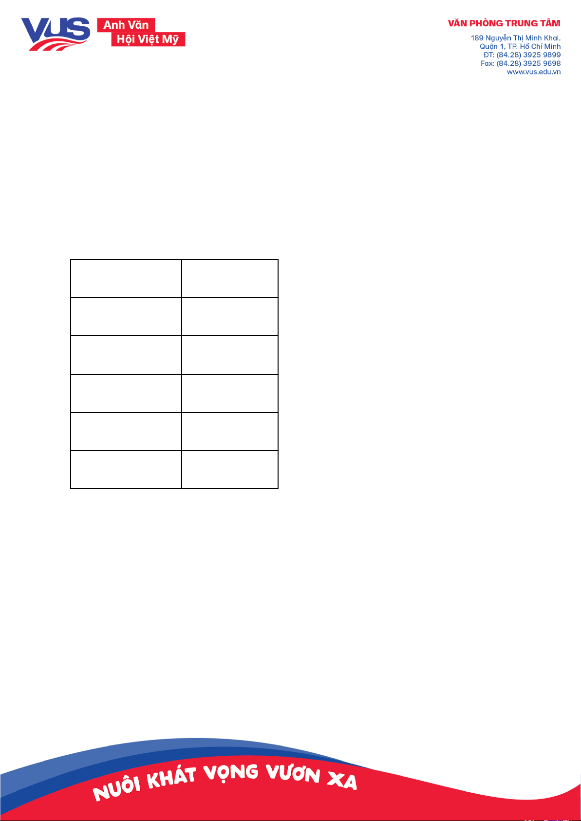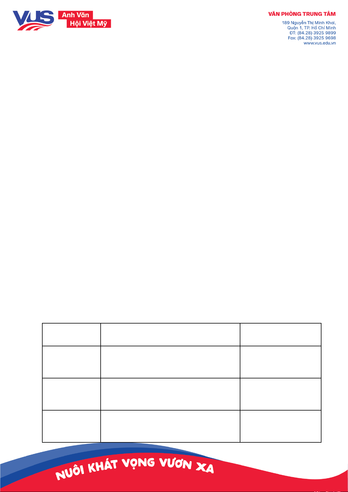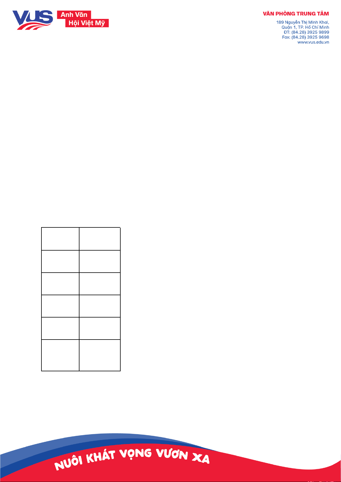 meeting started, John __________ (5. memorize) his main points. Đáp án Đoạn 1 Đoạn 2 1. had dreamed 1. had spent 2. had forgotten 2. had left 3. had called 3. had brought 4. had gone 4. had sent 5. had memorized