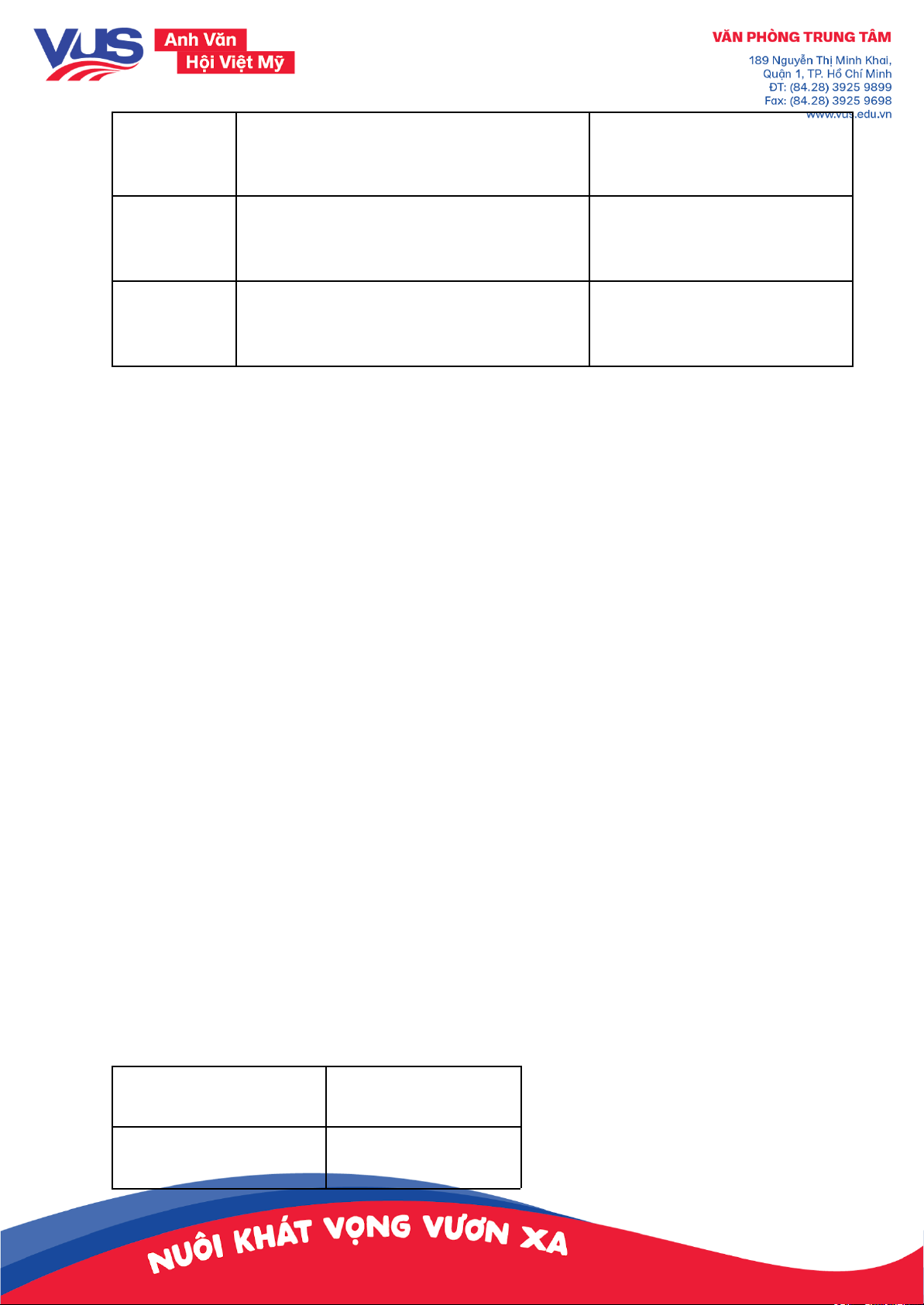 think) it sounds like an amazing adventure. Đáp án Đoạn 1 Đoạn 2 1. am working 1. am having 2. are helping 2. is eating 3. are trying 3. am drinking 4. is discussing 4. are chatting 5. is focusing 5. is talking 6. think