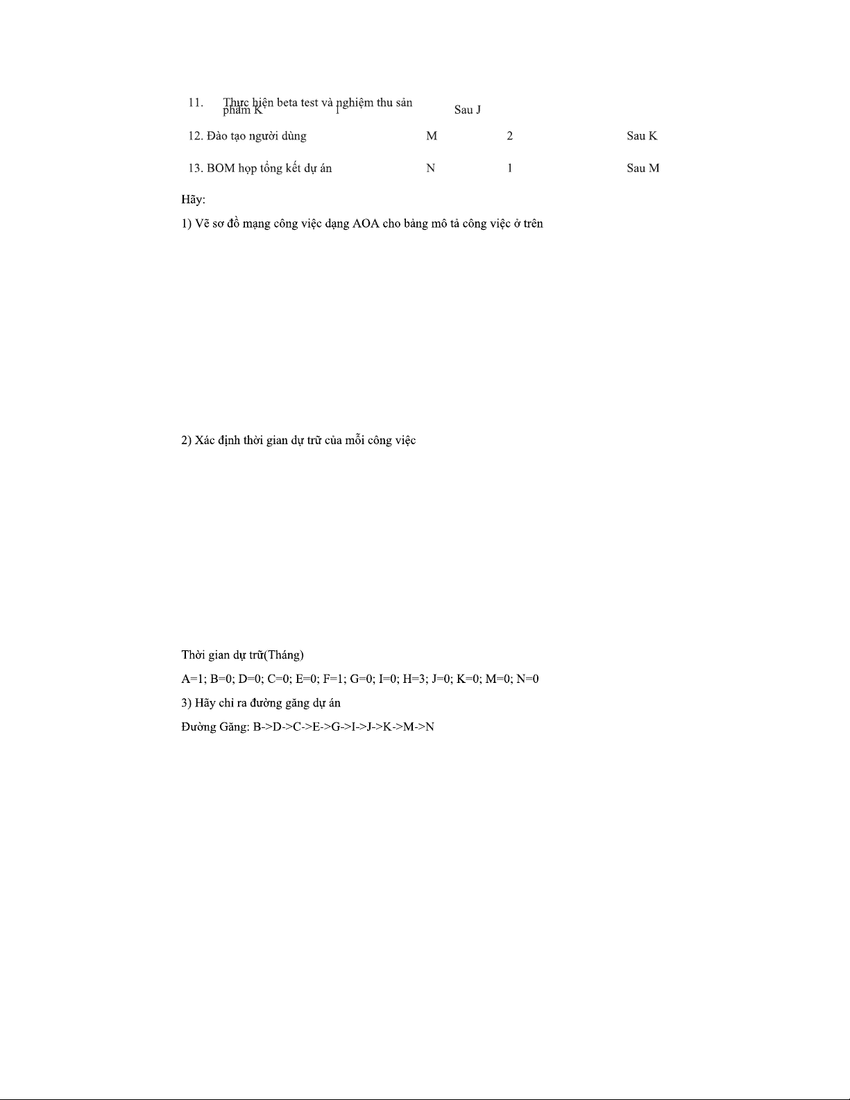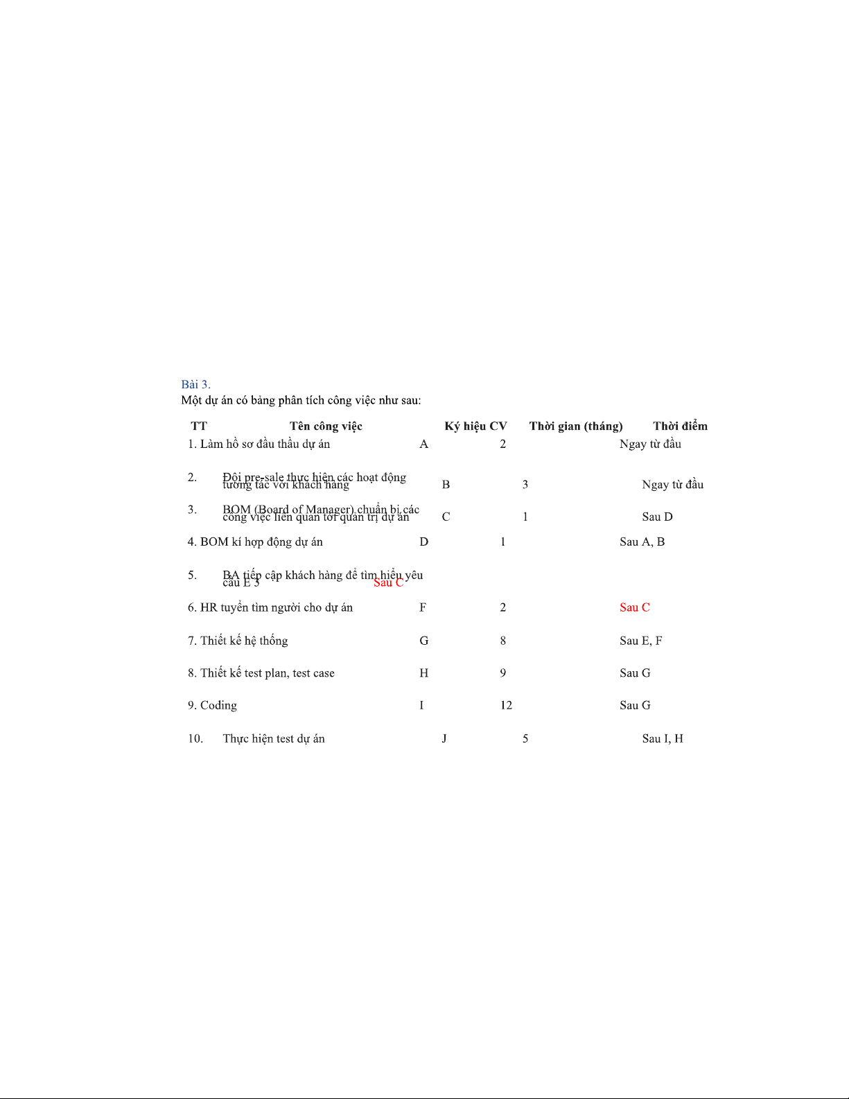 Bài tập 45K - Quản lý dự án: Tính toán & phân tích công việc