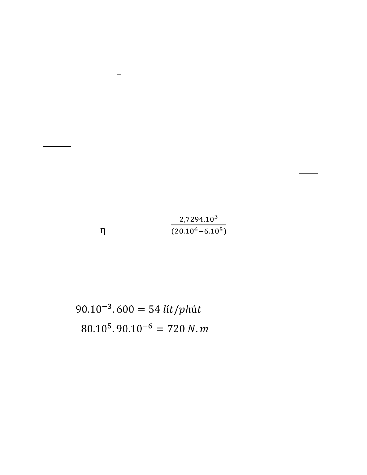 1. Tính lưu lượng bơm cung cấp theo QB [lít/ phút], khi biết hiệu suất thể tích là 0,9 ?