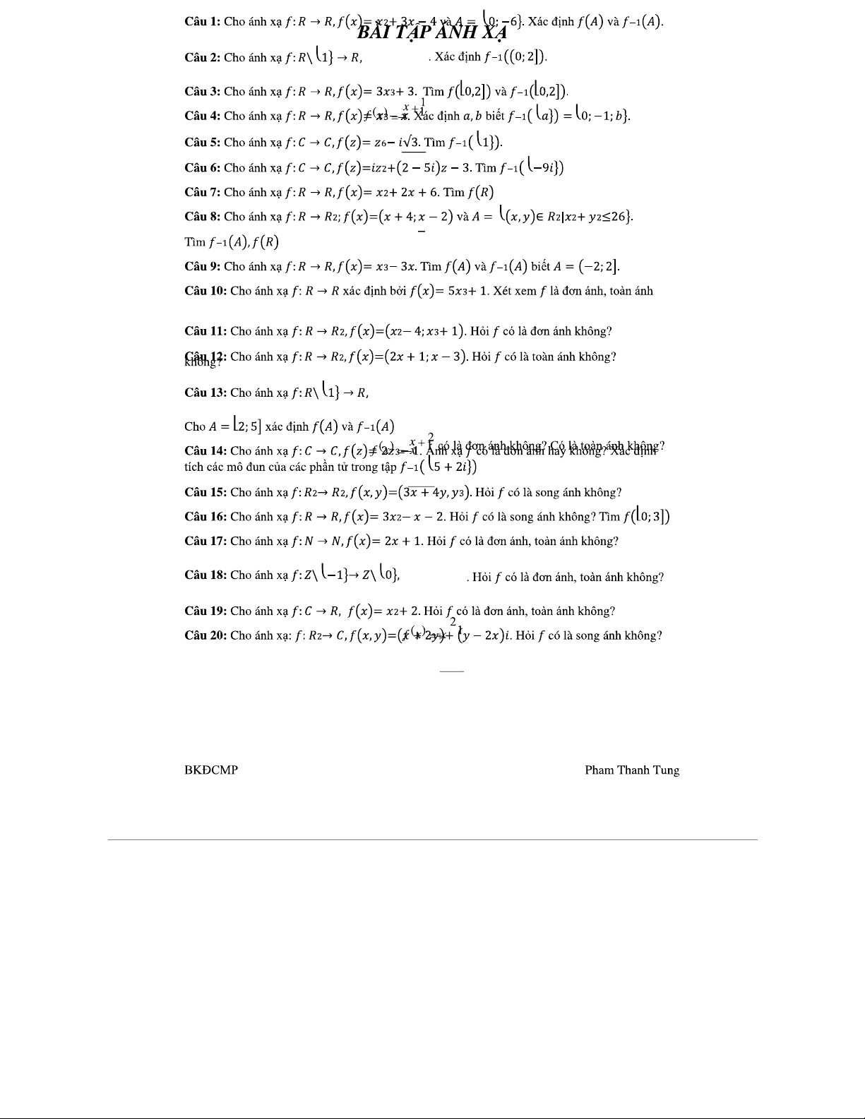 Bài Tập Ánh Xạ: Phân Tích và Giải Quyết Vấn Đề - Lời Giải Chi Tiết