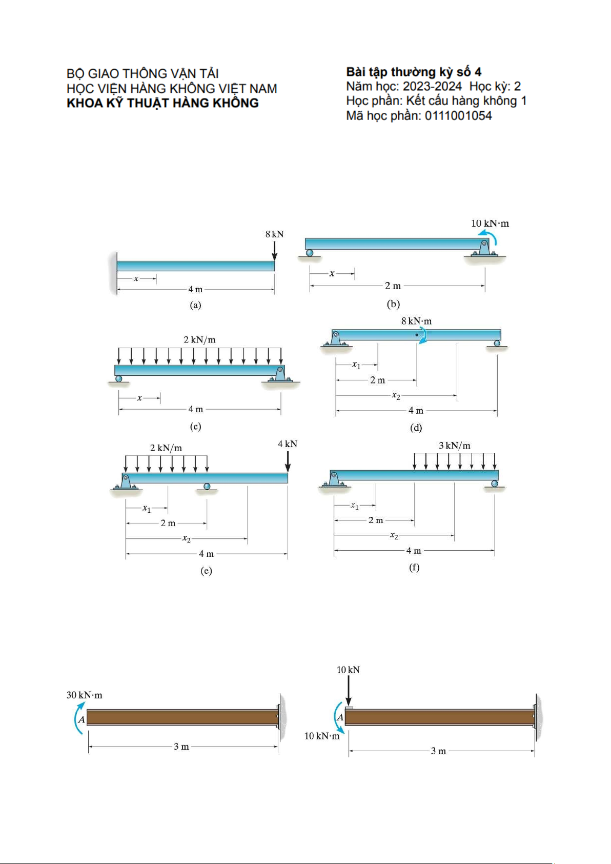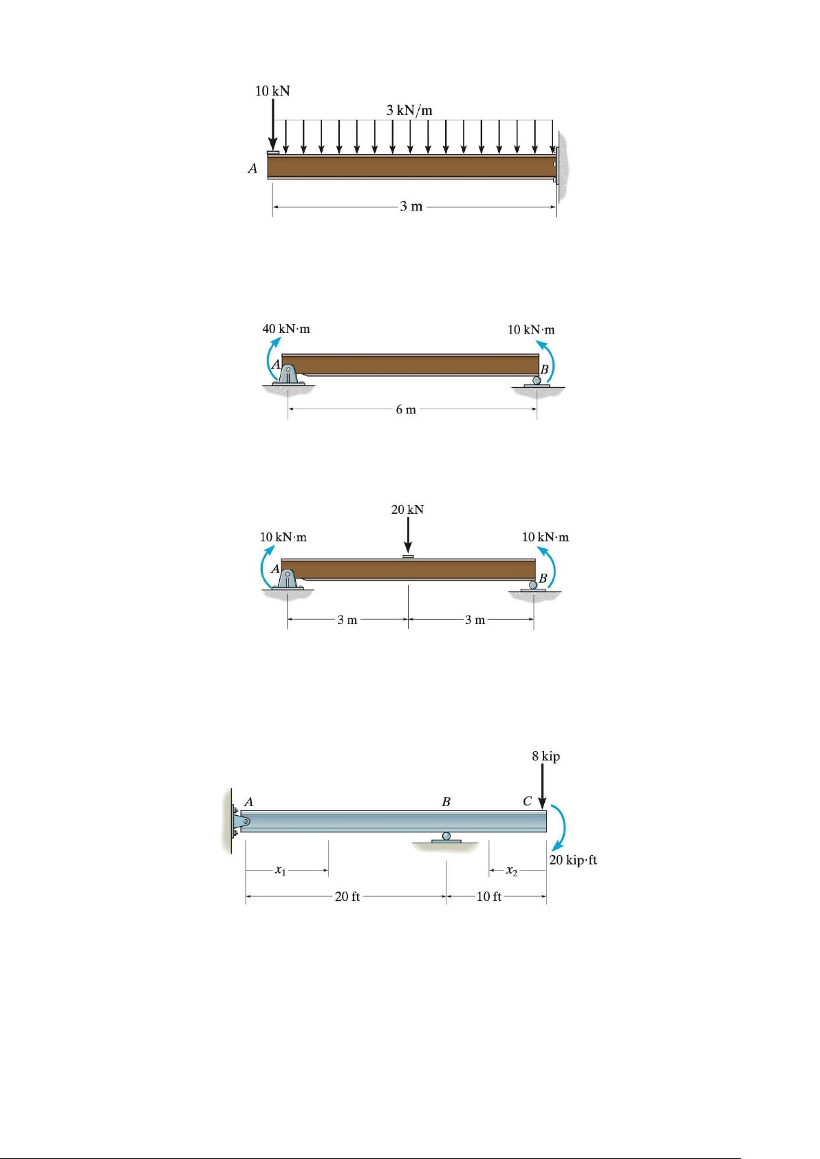 In each case, determine the internal bending moment as a function of , and state the necessary x