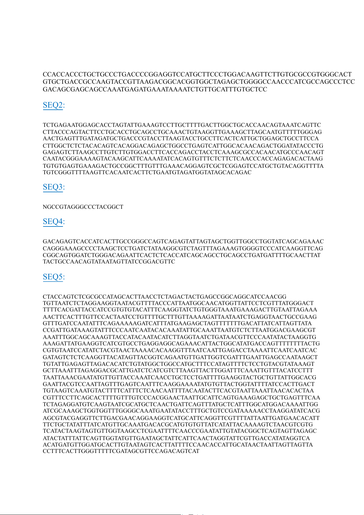 TGTCGGGTTTTAAGTTCACAATCACTTCTGAATGTAGATGGTATAGCACAGAC SEQ3: NGCCGTAGGGCCCTACGGCT SEQ4: