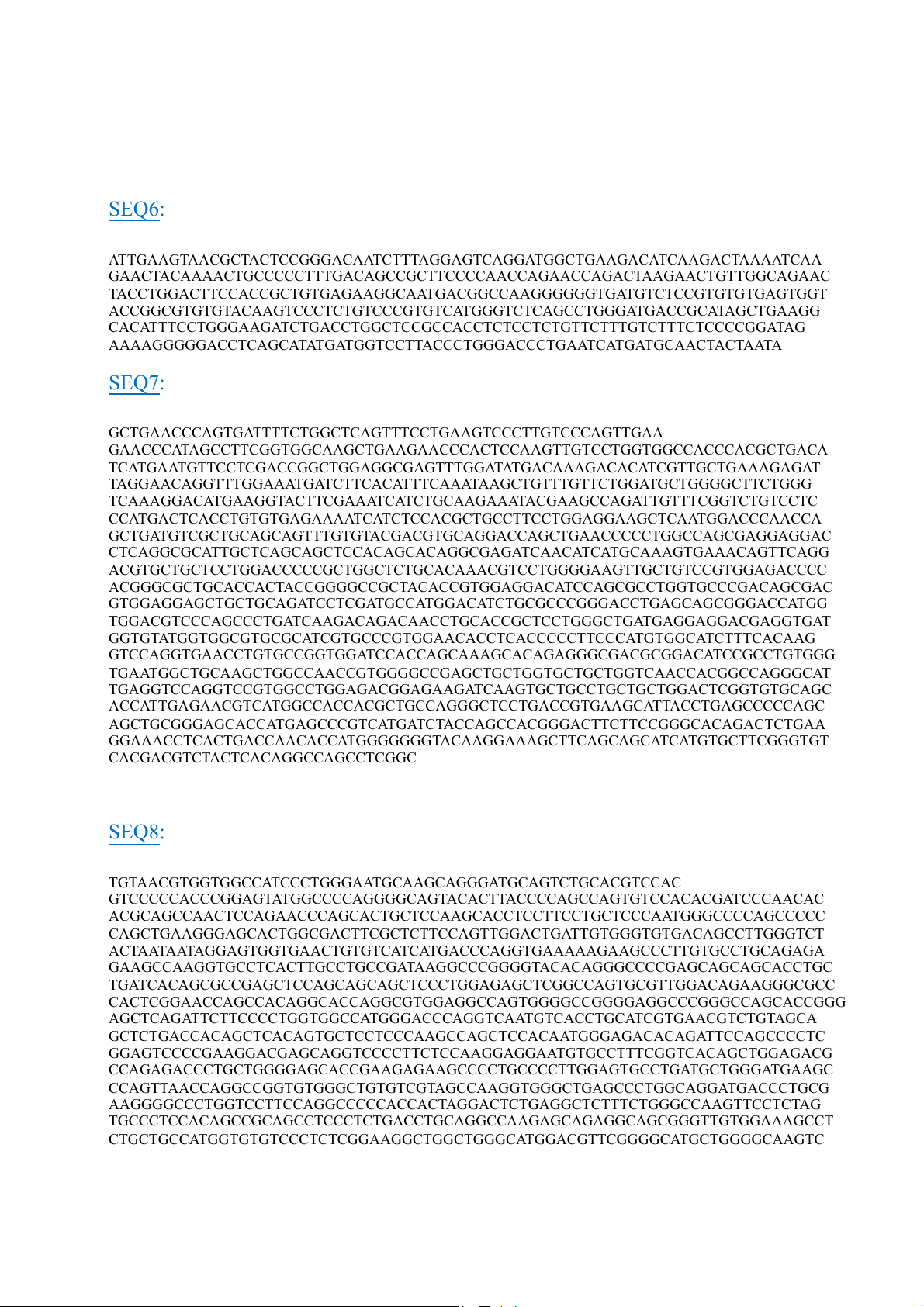 CACGACGTCTACTCACAGGCCAGCCTCGGC SEQ8: