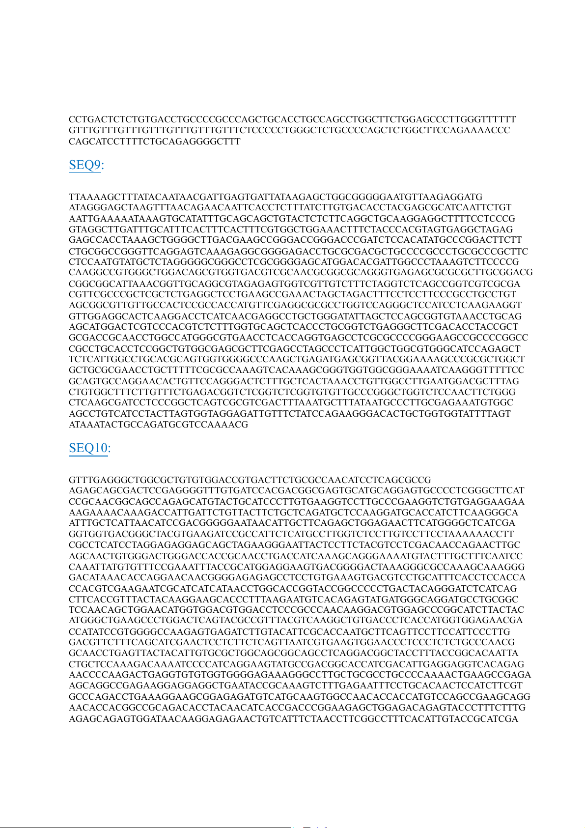 GTTTGTTTGTTTGTTTGTTTGTTTGTTTCTCCCCCTGGGCTCTGCCCCAGCTCTGGCTTCCAGAAAACCC CAGCATCCTTTTCTGCAGAGGGGCTTT SEQ9: