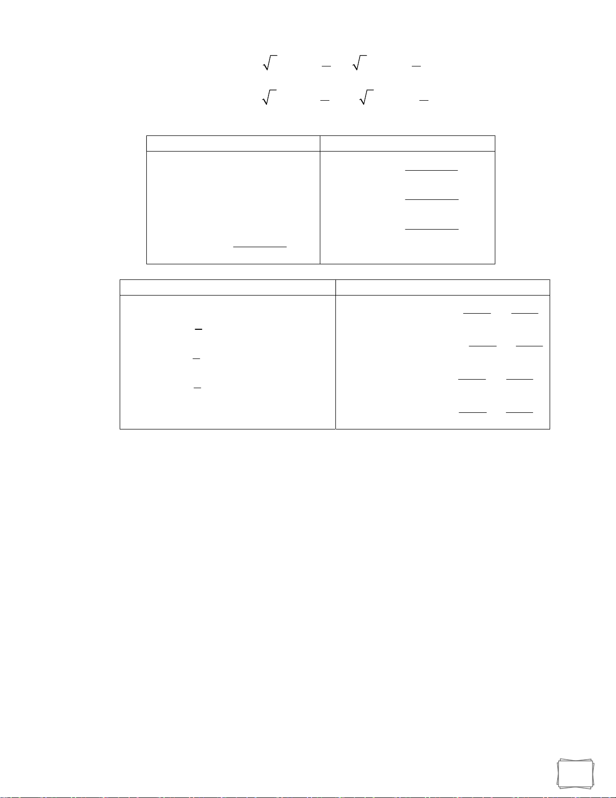 Câu 12. Cho biết sin   ,cos    . Và các biểu thức: A  sin    sin(  ); 5 5 2    B  cos(  )  cot        . Khi đó  2  Mệnh đề  Đúng Sai  a) A  cos   sin       b) B  cos   tan       c)  27     A  B    20 d)  29     A  B    20 1