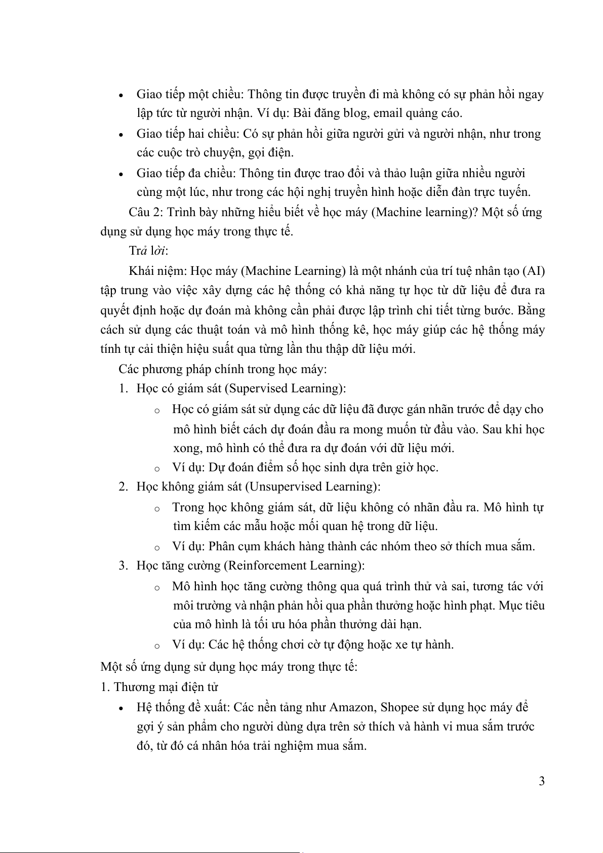 Câu 2: Trình bày những hiểu biết về học máy (Machine learning)? Một số ứng