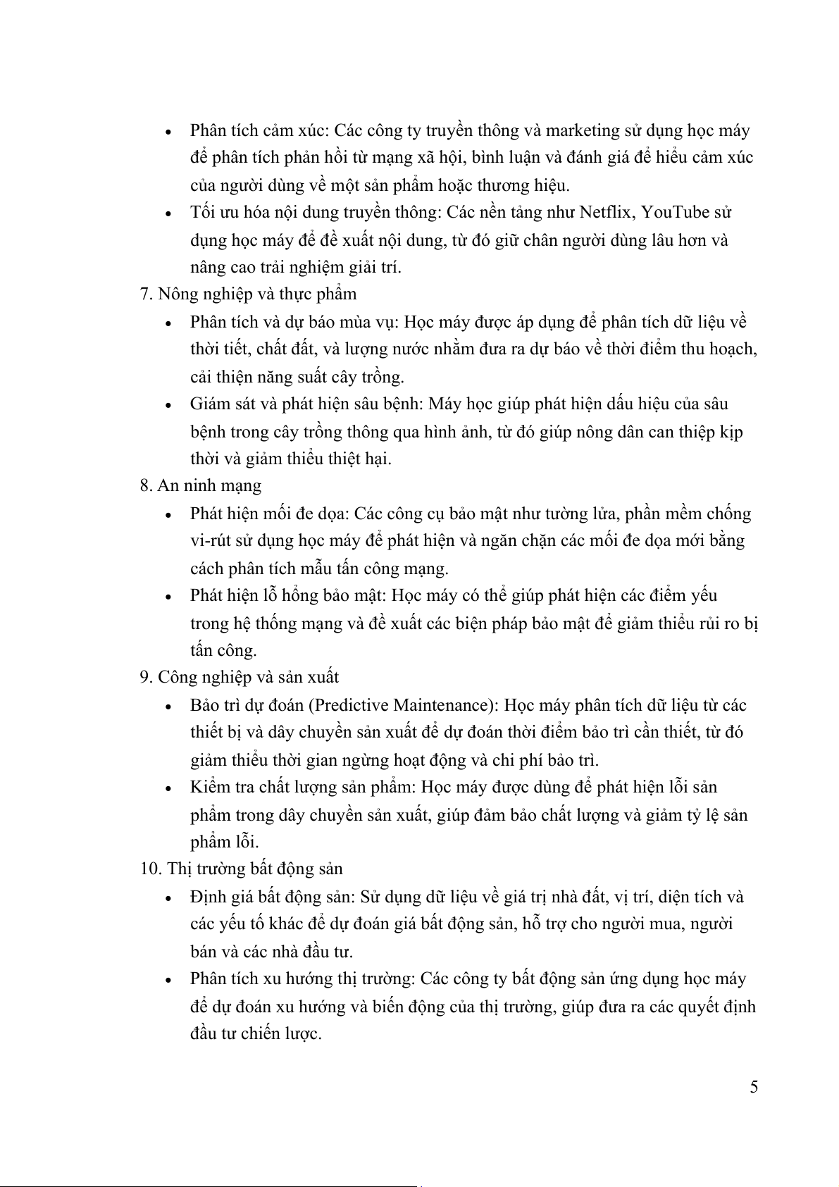 dụng sử dụng học máy trong thực tế. Trả lời: