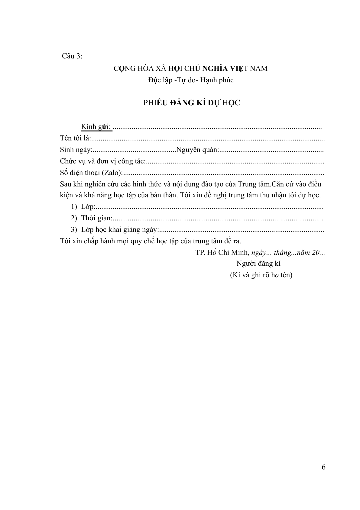 PHIẾU ĐĂNG KÍ DỰ HỌC
