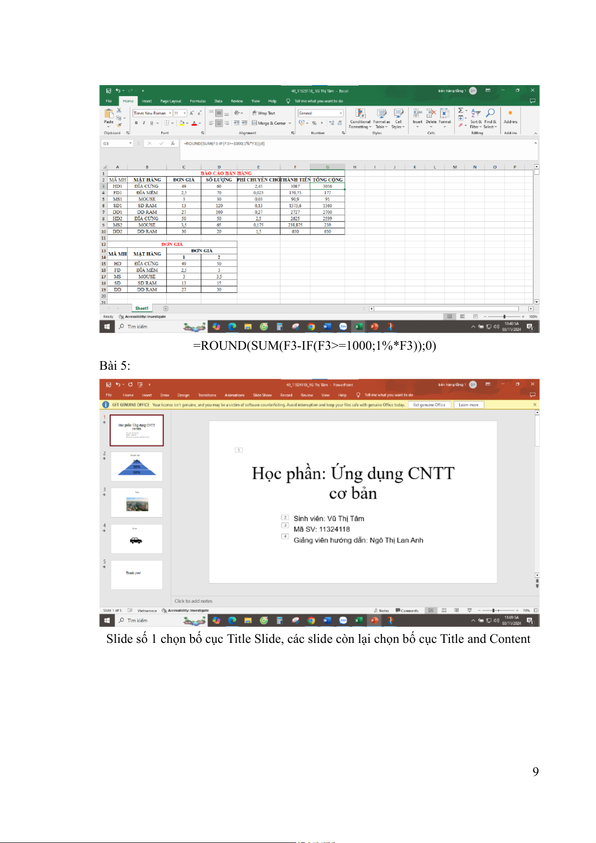 =ROUND(SUM(F3-IF(F3>=1000;1%*F3));0) Bài 5: