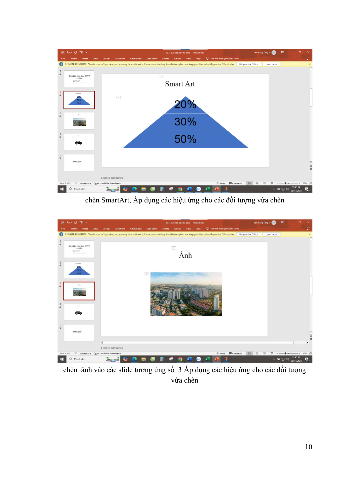 chèn ảnh vào các slide tương ứng số 3 Áp dụng các hiệu ứng cho các đối tượng vừa chèn 10