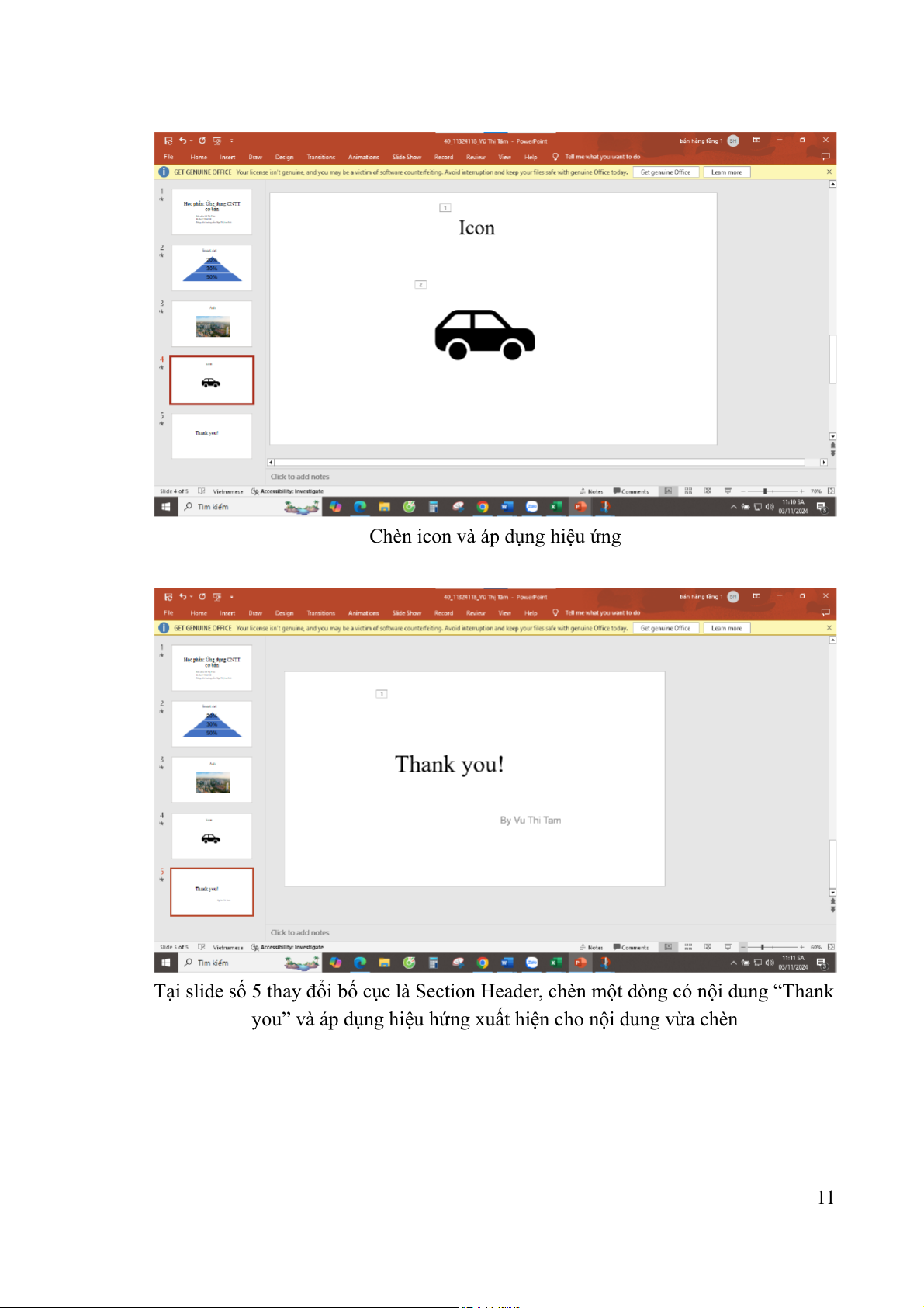 Tại slide số 5 thay đổi bố cục là Section Header, chèn một dòng có nội dung “Thank