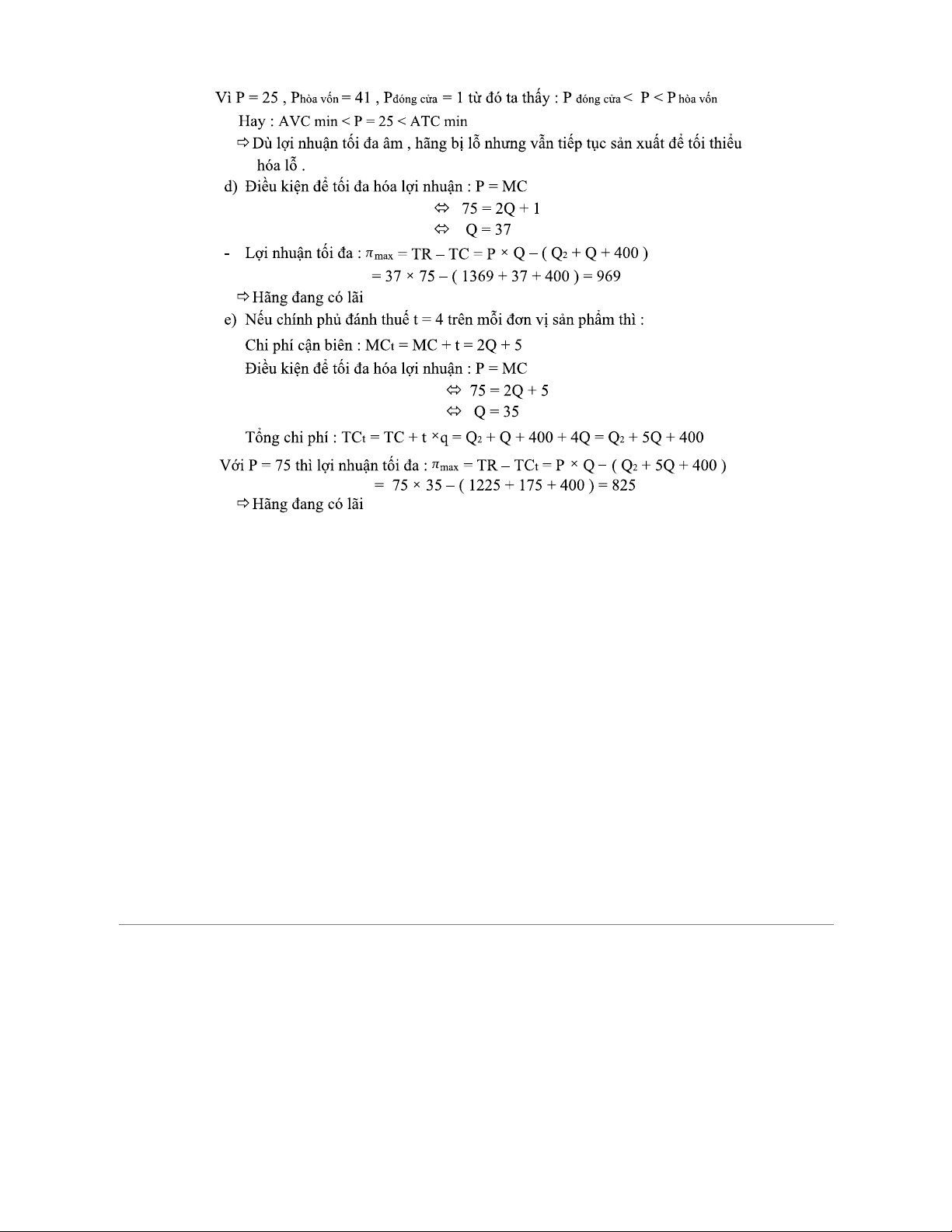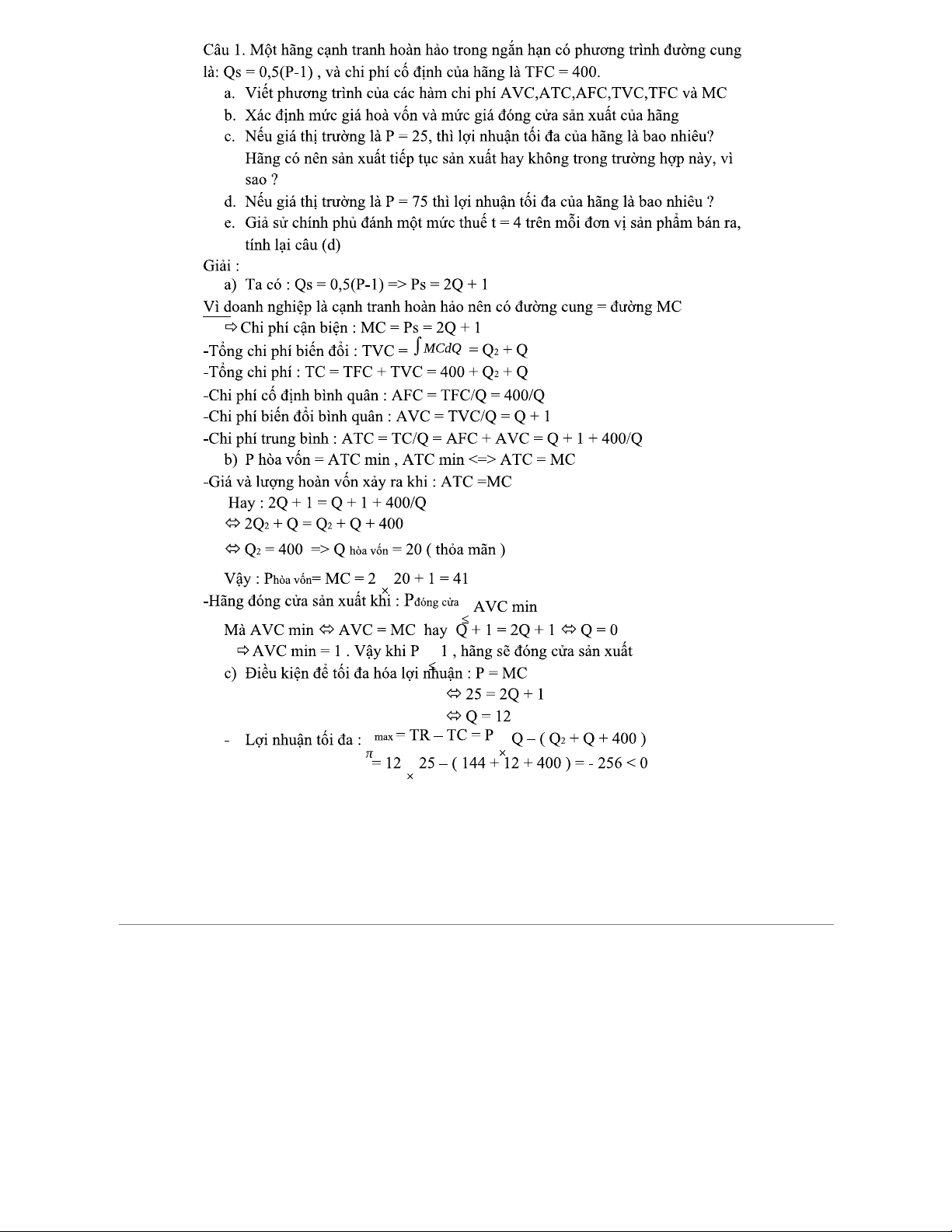 Bài tập Cạnh tranh Hoàn Hảo - C03 - Phân Tích Chi Phí và Lợi Nhuận