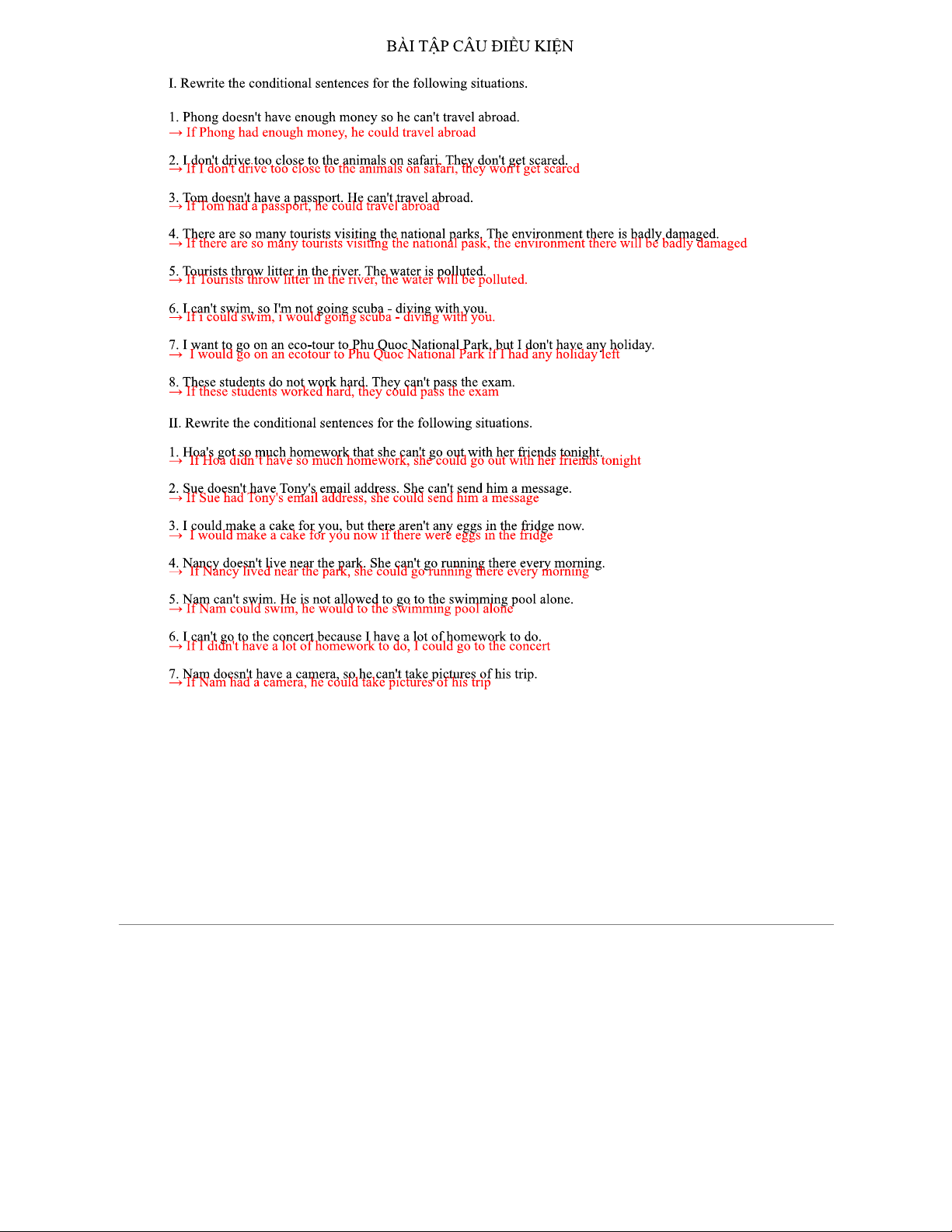 BÀI TẬP CÂU ĐIỀU KIỆN - BAI HOC - Conditional Sentences Exercises